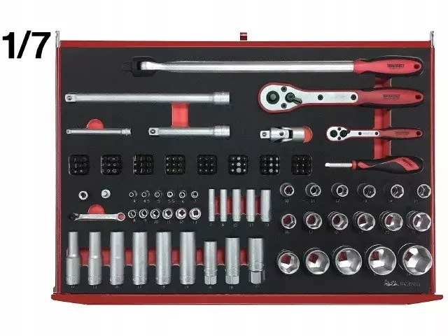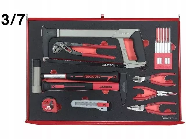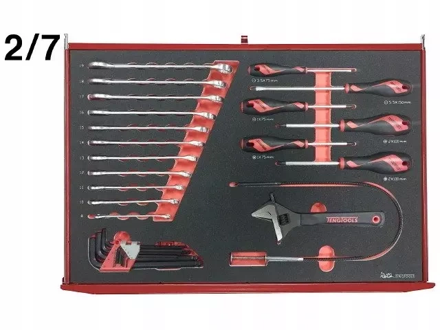 Narzędzia TengTools rozmieszczone bezpiecznie w nowoczesnych, wyfrezowanych wkładkach narzędziowych, wykonanych z trzech różnobarwnych warstw tworzywa piankowego EVA, dzięki czemu Operator narzędzi szybko widzi, którego elementu we wkładce narzędziowej brakuje.