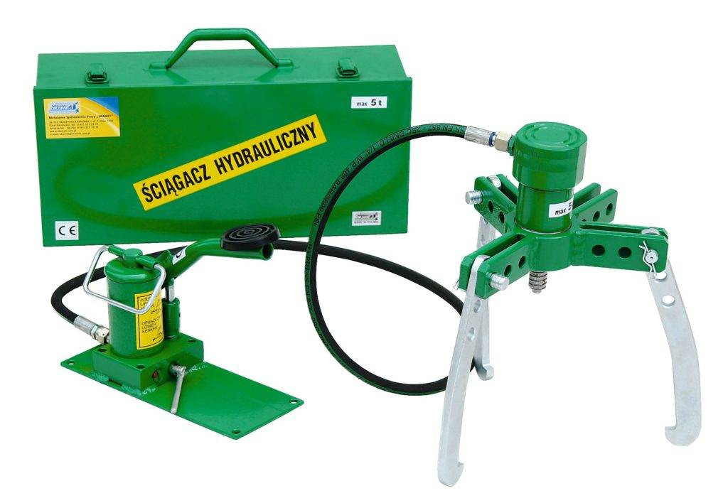 Ściągacze hydrauliczne służą do demontażu: łożysk, kół zębatych, pasowych jak również do piast i bębnów. Dzięki zastosowaniu siłownika hydraulicznego wykonywanie ww. prac nie wymaga dużej siły. Poprzez przestawienie śrub w poszczególne otwory ramion ściągacza można uzyskać żądany rozstaw łap ściągacza o zakresach podanych w tabelce.