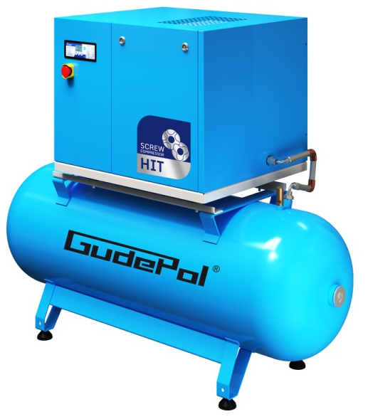 Sprężarka śrubowa GUDEPOL serii HIT-3G to kompleksowe rozwiązanie w postaci źródła sprężonego powietrza w firmie, skonstruowane w oparciu o najnowocześniejsze technologie światowe powiązane z najwyższą jakością materiałów. Kompresor HIT-3G wyposażony jest w panel mikroprocesorowy układu sterowania co jest nowością w kompresorach tej klasy. Rozwiązanie to pozwala na łatwą i czytelną pracę urządzenia. Układ automatycznie wyłapuje nieprawidłowości pracy i informuje, wyświetlając rodzaj usterki, a w przypadku zagrożenia uszkodzenia sprężarki, wyłączy ją.