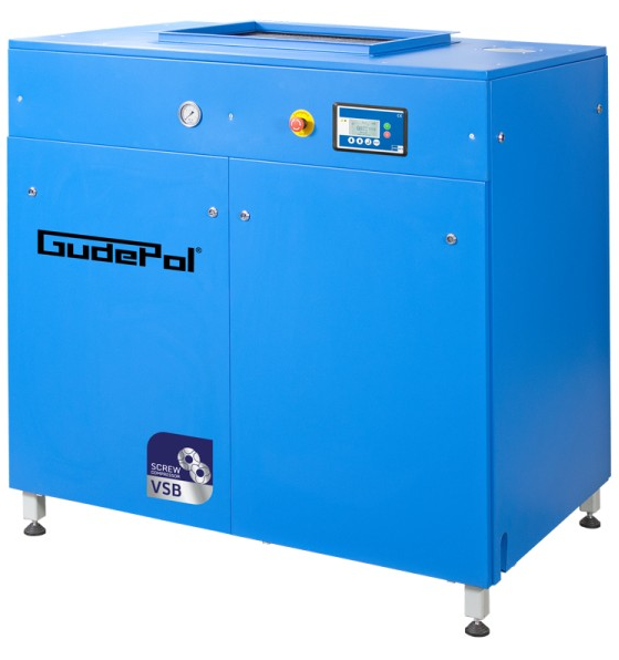 Obudowa kompresora śrubowego VSB jest formą zamkniętą, wykonaną z wysoką precyzją, o kompaktowej budowie. Płyty dźwiękoizolacyjne zainstalowane wewnątrz obudowy wraz z układem konstrukcyjnym sprężarki umożliwiły osiągniecie bariery hałasu 68 [dBA] co jest jednym z najlepszych wyników w tej klasie kompresorów.