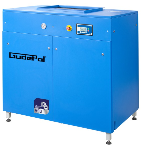 Obudowa kompresora śrubowego VSB jest formą zamkniętą, wykonaną z wysoką precyzją, o kompaktowej budowie. Płyty dźwiękoizolacyjne zainstalowane wewnątrz obudowy wraz z układem konstrukcyjnym sprężarki umożliwiły osiągniecie bariery hałasu 68 [dBA] co jest jednym z najlepszych wyników w tej klasie kompresorów.