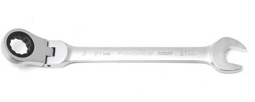 Mocny mechanizm zębatkowy wykonany z hartowanej stali, pozwalający na niewielki skok klucza. Klucz płasko – oczkowy może z powodzeniem zastąpić profesjonalną grzechotkę szybkomocującą, a zarazem ma znacznie mniejsze rozmiary - co pozwala na dostęp do ciasnych miejsc.