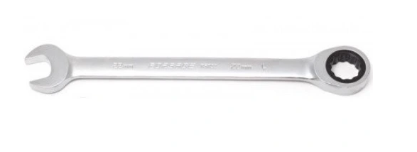 Mocny mechanizm zębatkowy wykonany z hartowanej stali, pozwalający na niewielki skok klucza. Klucz płasko – oczkowy może z powodzeniem zastąpić profesjonalną grzechotkę szybkomocującą, a zarazem ma znacznie mniejsze rozmiary - co pozwala na dostęp do ciasnych miejsc.