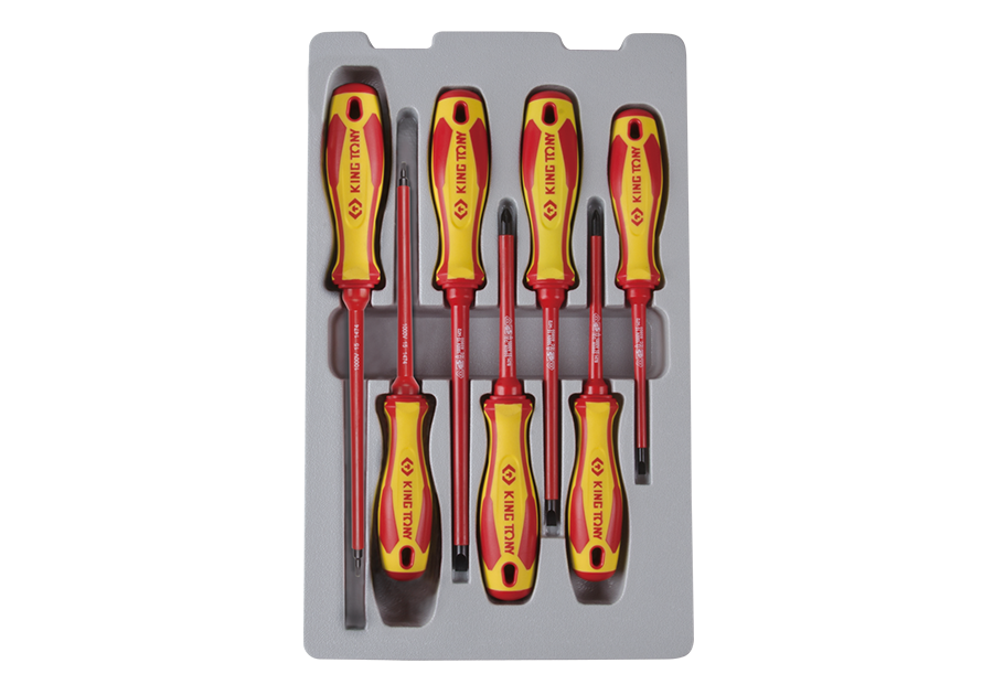 ZESTAW WKRĘTAKÓW IZOLOWANYCH 7cz. POZIDRIV No.1x100, No.2x100, PŁASKIE 4x100, 5,5x125, 6,5x150, KWADRAT No.1, No.2