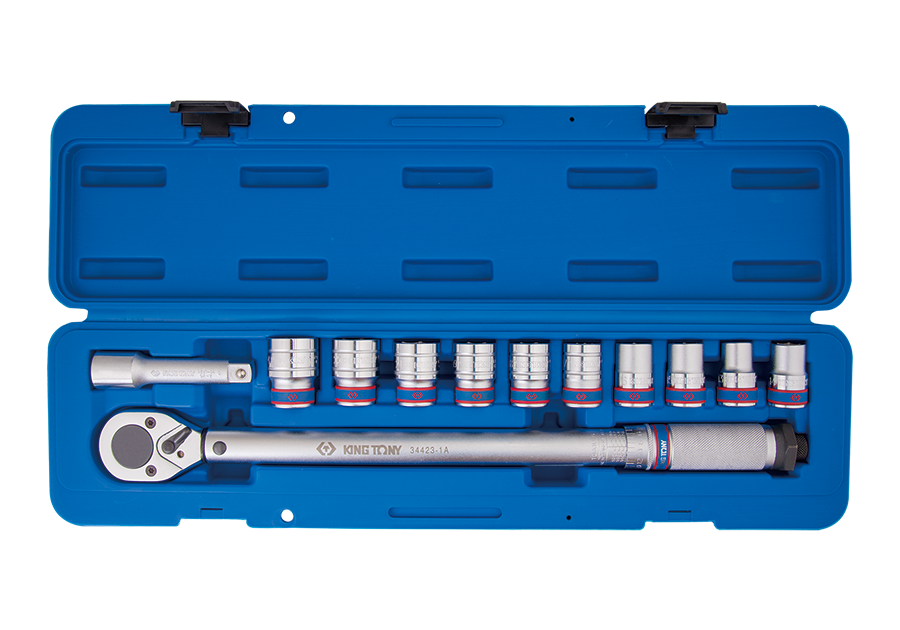 KLUCZ DYNAMOMETRYNCZY 1/2" 42-210NM Z ZESTAWEM NASADEK, 12 CZ.