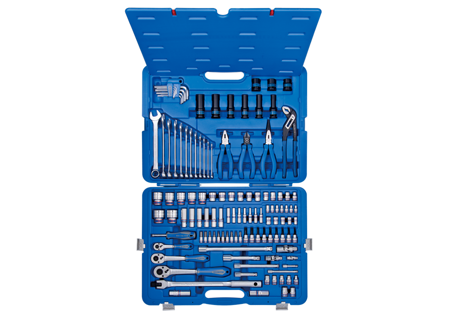 ZESTAW NASADEK 1/4"+3/8"+1/2" 119cz. 4 -32mm 6-kąt. Z AKCESORIAMI, CHROM+NARZĘDZIA UNIWERSALNE W WALIZCE PLAST.