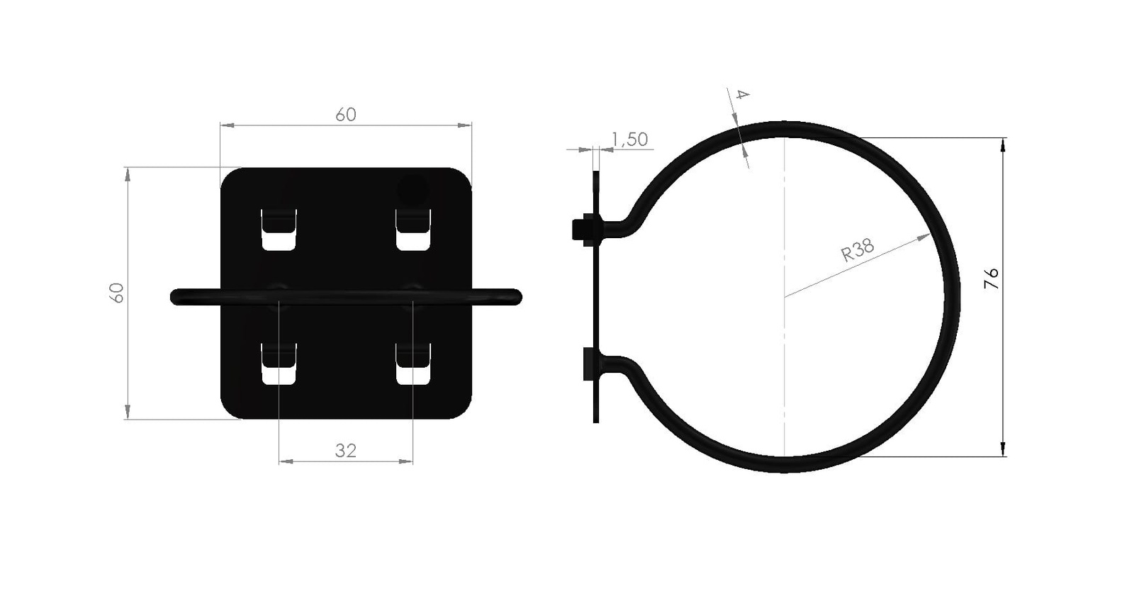 - rozstaw zaczepów do kratownicy 32 mm