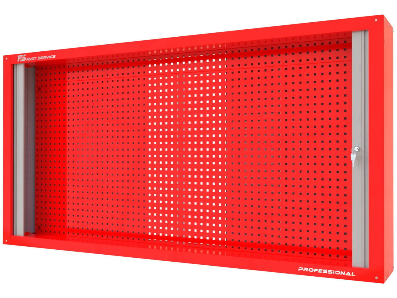 - tylna ściana gabloty wykonana z płyty perforowanej umożliwiającej zamontowanie zawieszek systemowych
