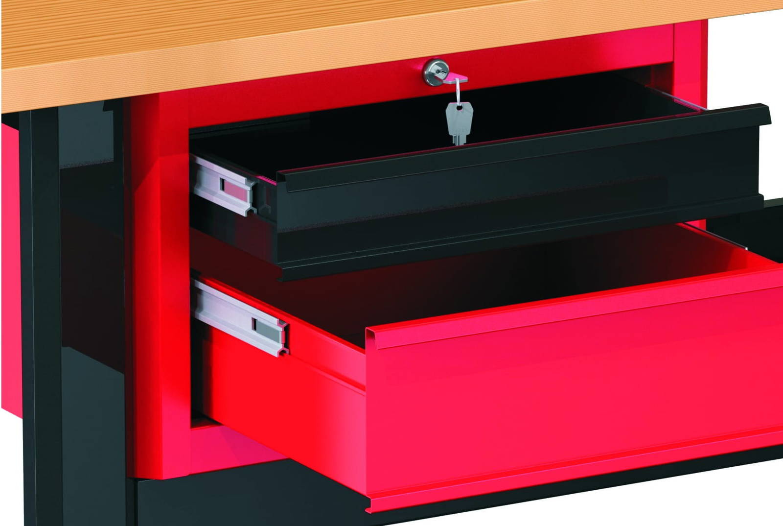 Zamknięcie | Centralny zamek blokujący wszystkie szuflady w danej szafce. Do każdej szafki dwa klucze w komplecie. |