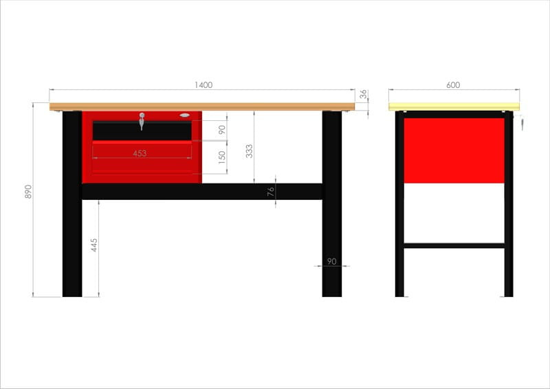 STÓŁ WARSZTATOWY Z 1 SZAFKĄ (2 szuflady) (N-3-02-01)