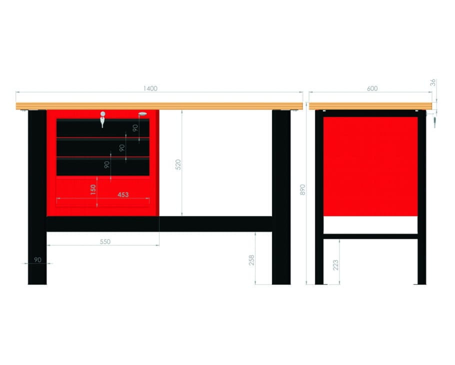 STÓŁ WARSZTATOWY Z 1 SZAFKĄ (4 szuflady) (N-3-04-01)