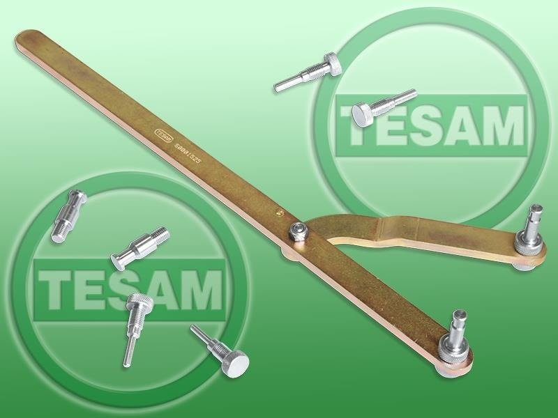 Sprawdź dostępnośćUniwersalny klucz do blokowania kół zębatych paska rozrządu, z ruchomym ramieniem i wymiennymi końcówkami