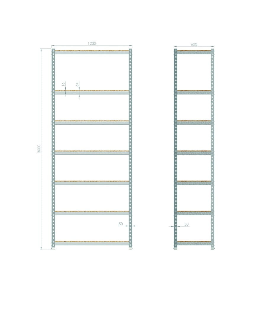 REGAŁ MAGAZYNOWY 3000 x 1200 x 600 7-PÓŁKOWY (R-1-04-01)