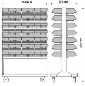 - Możliwowść zamocowania po obu stronach stojaka po 49 pojemników w 7 rzędach po 7 sztuk.