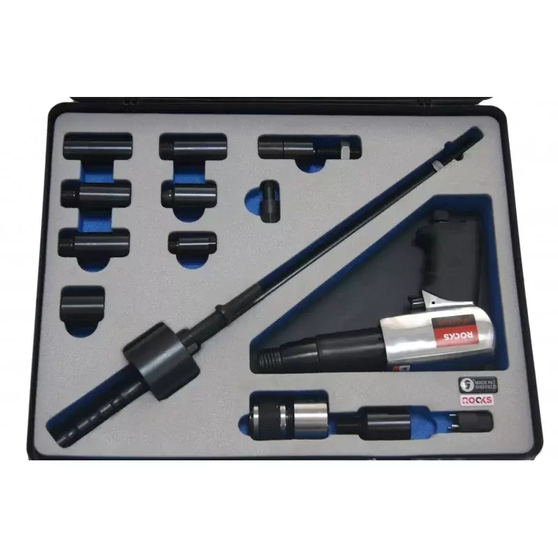 ZESTAW PRZEZNACZONY JEST DO WYCIĄGANIA ZAPIECZONYCH WTRYSKIWACZY W STOPNIU ŚREDNIM I MOCNYM. ZESTAW SZCZEGÓLNIE PRZYDATNY NA GŁOWICACH NA KTÓRYCH NIE MOŻNA BEZPIECZNIE USTAWIĆ PRASY POD SIŁOWNIK HYDRAULICZNY.