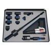 SKŁAD ZESTAWU: MŁOT UDAROWY, ŚCIĄGACZ BEZWŁADNOŚCIOWY, PRZEGUB KULOWY, ADAPTERY DO WTRYSKIWACZY: SIMENS M25, SIMENS M27, DENSO M20, DENSO M16, DELPHI M14, M12 DO KRÓĆCA PALIWA, BOSCH ADAPTER WIELOPUNKTOWY, KLUCZ AMPUŁOWY H10 DO ZAWORKA WTRYSKIWACZA, NASADKA 3-PIN DO WTRYSKIWACZA PIEZO DENSO.