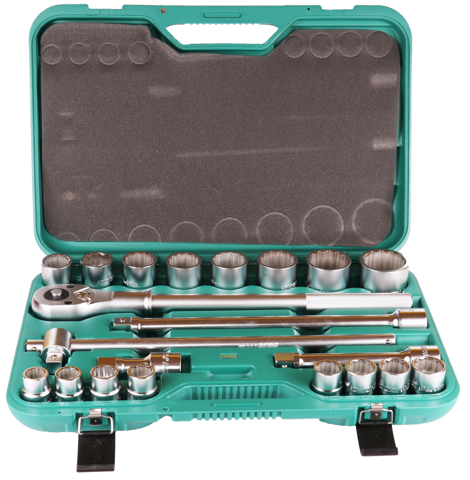 - Nasadki 3/4 cala (10 sztuk): 19, 21, 22, 23, 24, 26, 27, 29, 30, 32, 35, 36, 38, 41, 46, 50 mm