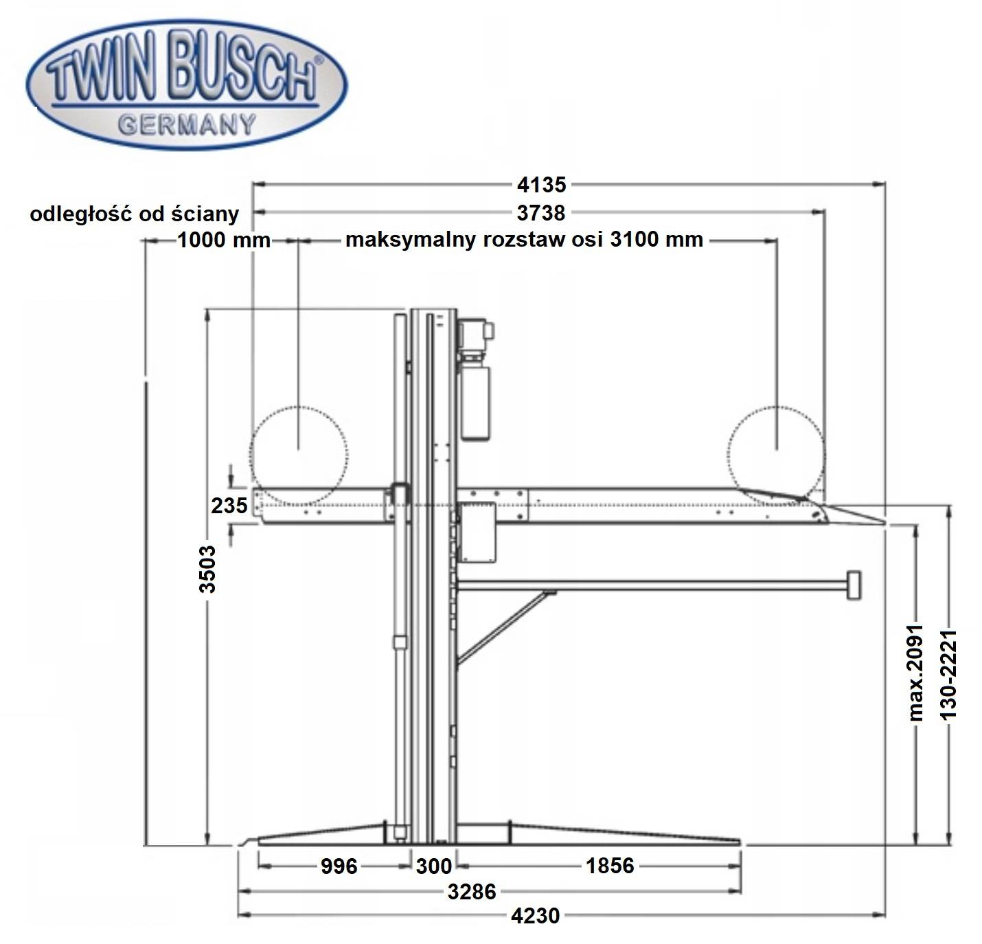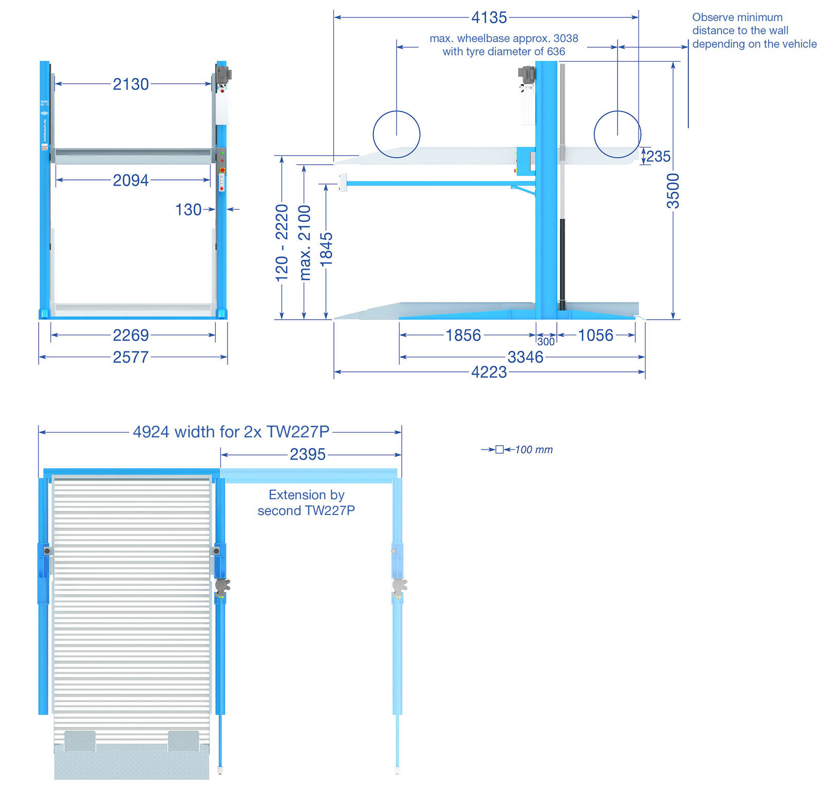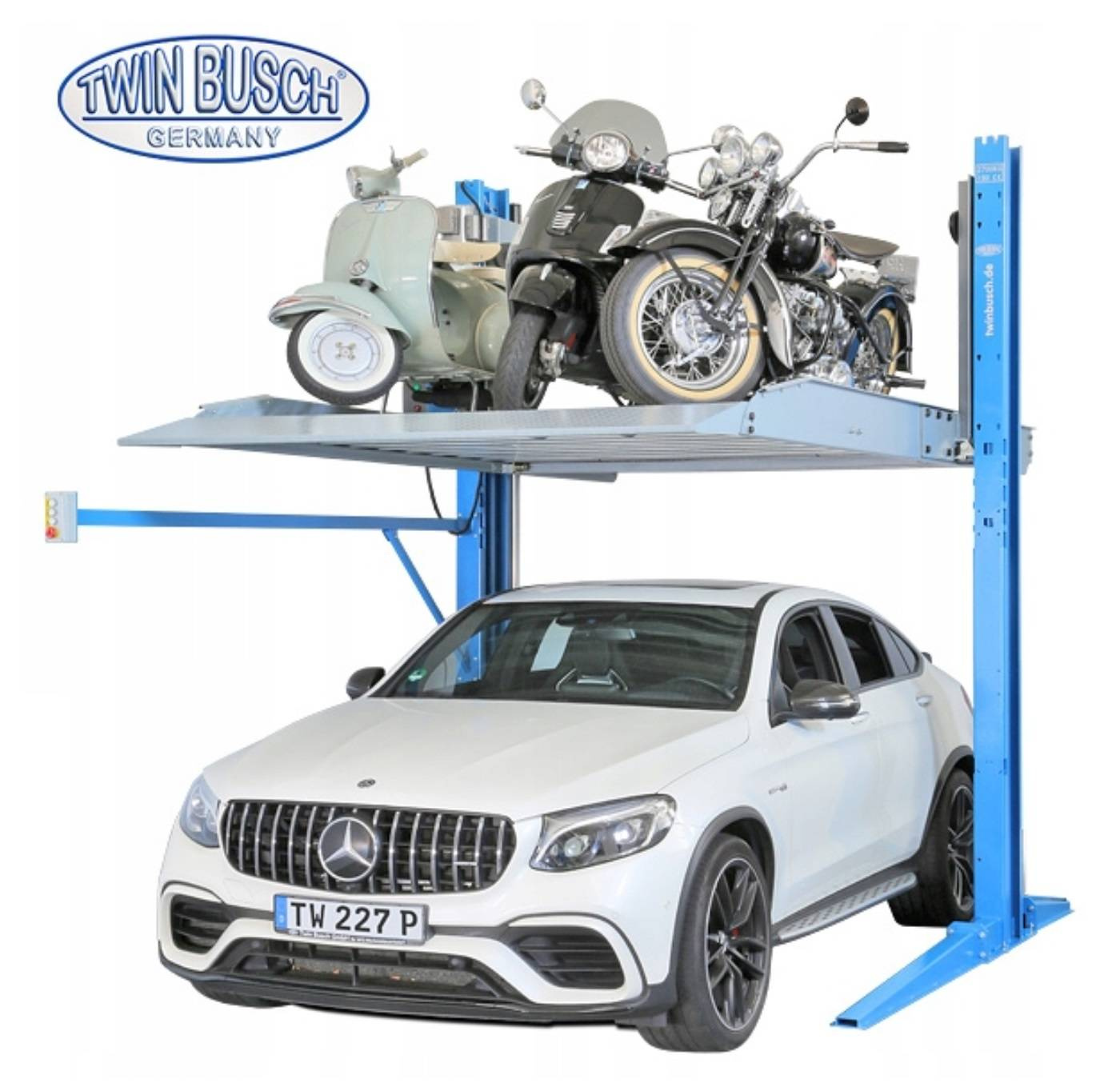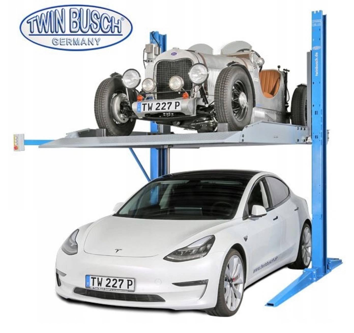 Praktyczny podnośnik parkingowy z 2 kolumnami i automatycznym odblokowaniem.Ze względu na konstrukcję 2 kolumn wymagana jest mniejsza powierzchnia, dzięki czemu podnośnik idealnie nadaje się do pomieszczeń o ograniczonej przestrzeni. Ponadto podnośniki typu TW 227 P można ustawiać jeden obok drugiego (w dowolnej liczbie). Pozwala to na lepsze gospodarowanie przestrzenią.Zespół sterujący z przodu zapewnia wygodne podnoszenie i opuszczanie platformy parkingowej .Dzięki bardzo dużej wysokości podnoszenia2100 mm i udźwigu2700 kg podnośnik jest również imponująco dobry do wysokich i cięższych pojazdów, takich jak duży SUV, minibus lub VW T6.Dzięki solidnie zbudowanej i zabezpieczonej (ocynkowanej) platformie pojazd poniżej jest chroniony przed olejem i brudem.