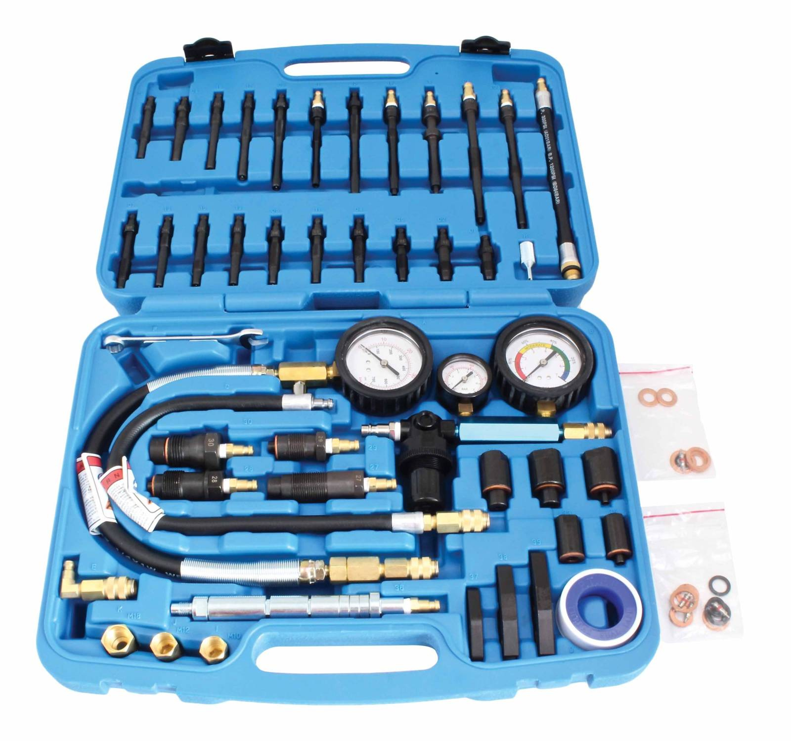 – Dodatkowy manometr do pomiaru wstępnego ciśnienia podczas testu kompresji (0-7Bar)