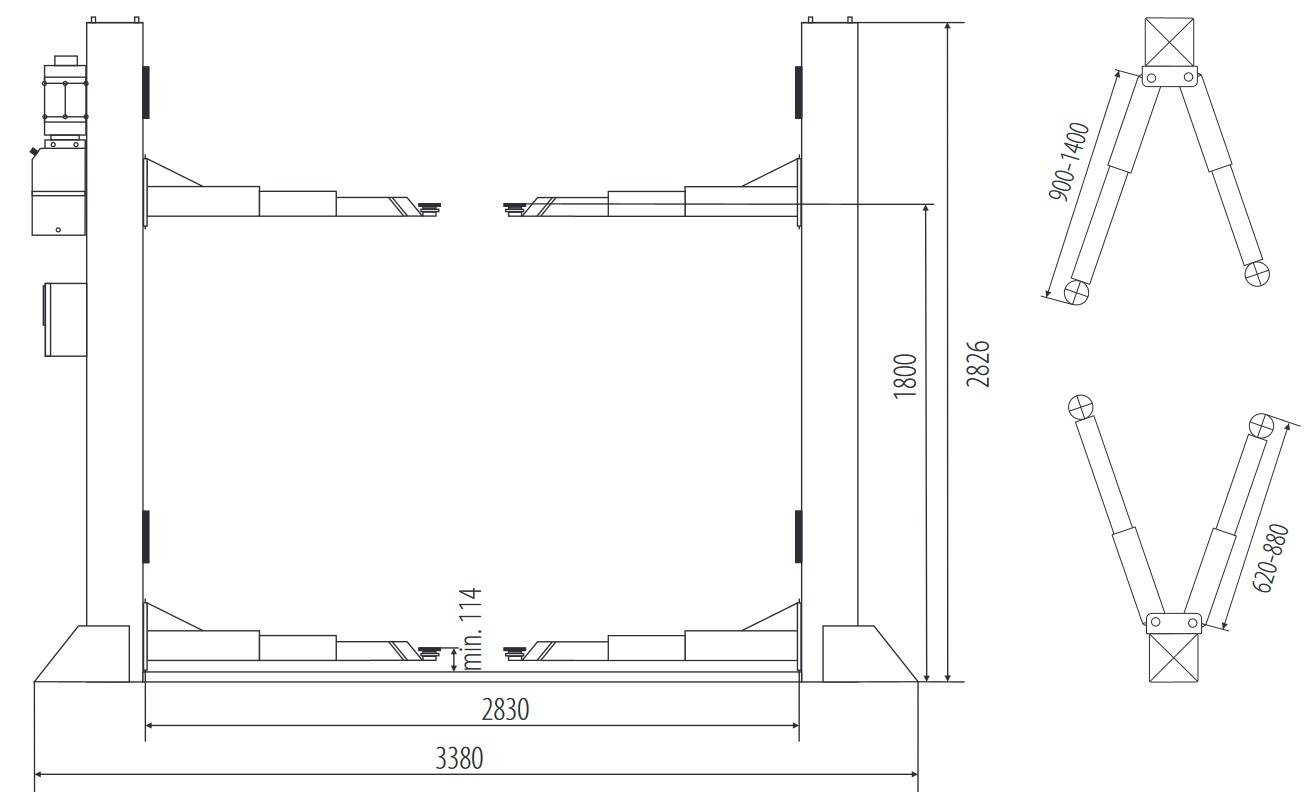 - Podnośnik dwukolumnowy, elektrohydrauliczny