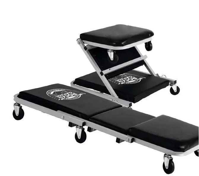 - Mocna, solidna leżanka serwisowa z profili stalowych i miękkiej eko-skóry. Leżanka o konstrukcji 2 w 1, z bardzo łatwą zmianą w siedzisko warsztatowe.