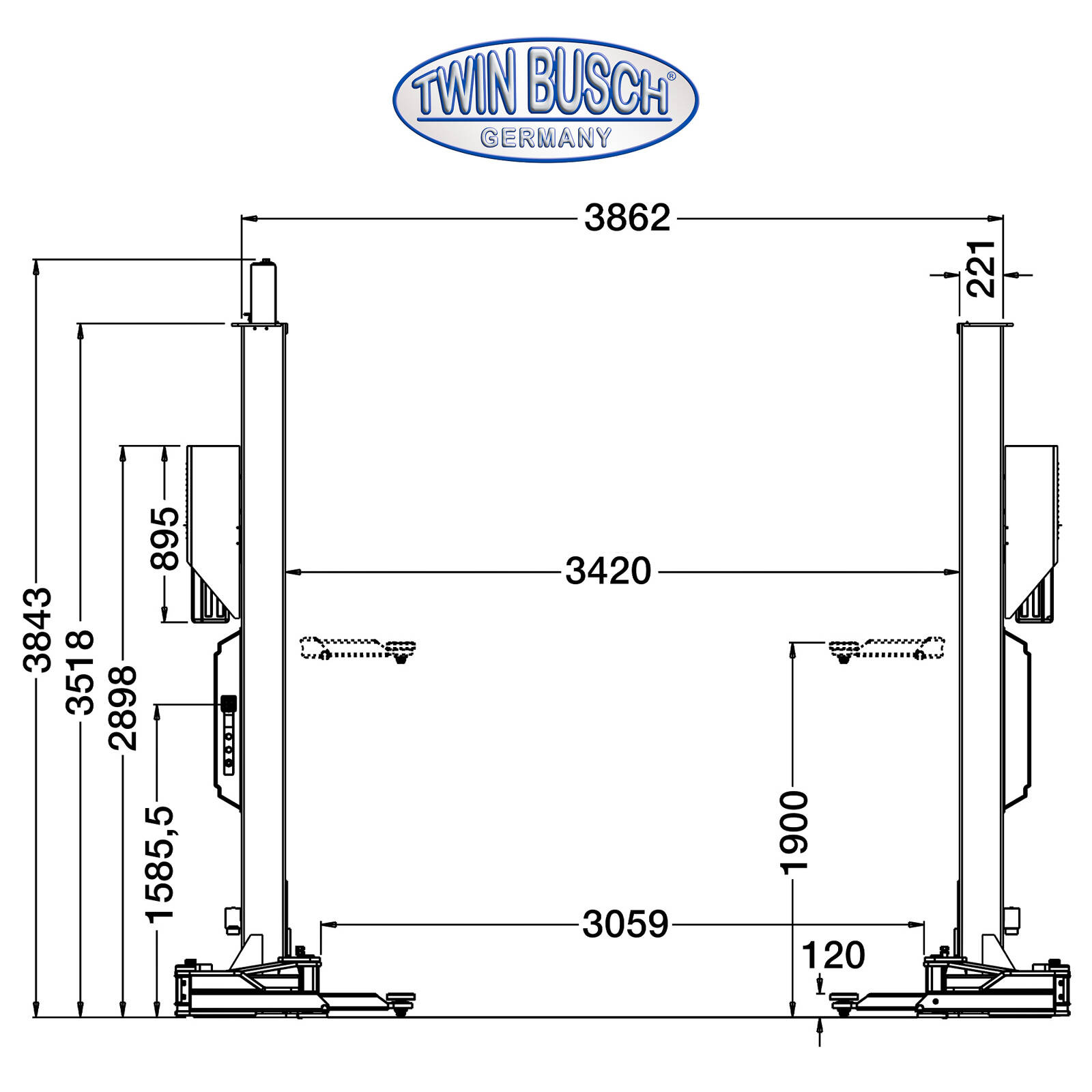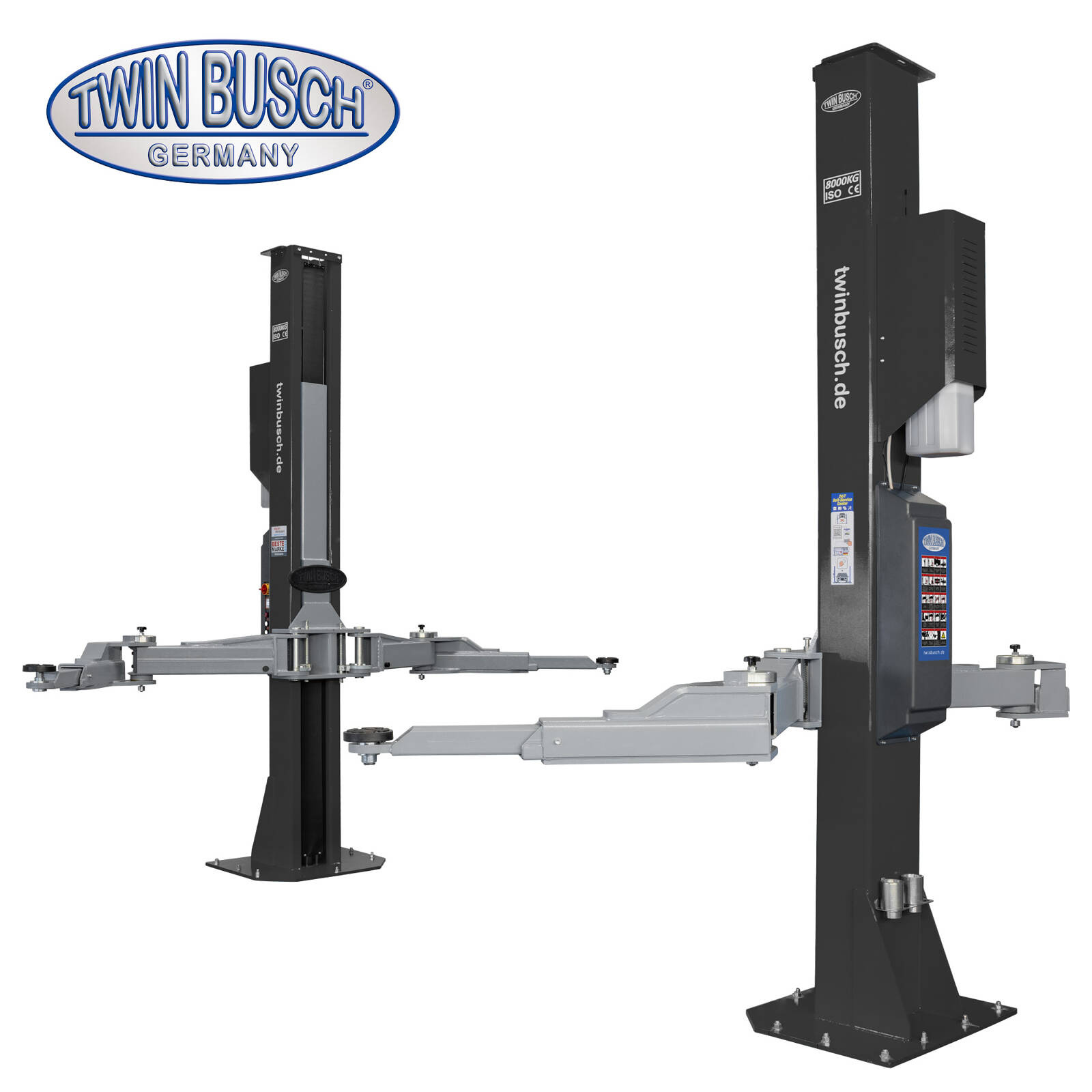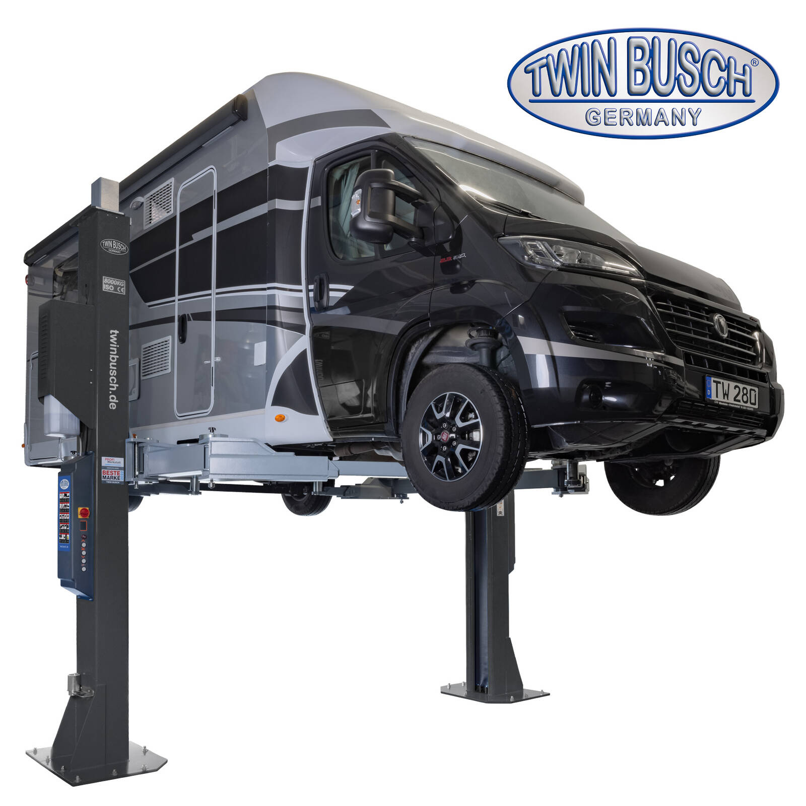 Dzięki udźwigowi 8.0 t i symetrycznie teleskopowym ramionom nośnym z podwójnym przegubem w konstrukcji ramienia nośnego M, TW 280-G to najpotężniejszy podnośnik dwukolumnowy Twin Busch. Dzięki niezwykle dużemu zakresowi regulacji, podniesie wszystko od małych samochodów (np. Smart) po samochody dostawcze, nawet z dużym rozstawem osi (np. MB Sprinter, samochody kempingowe, pojazdy specjalne).
