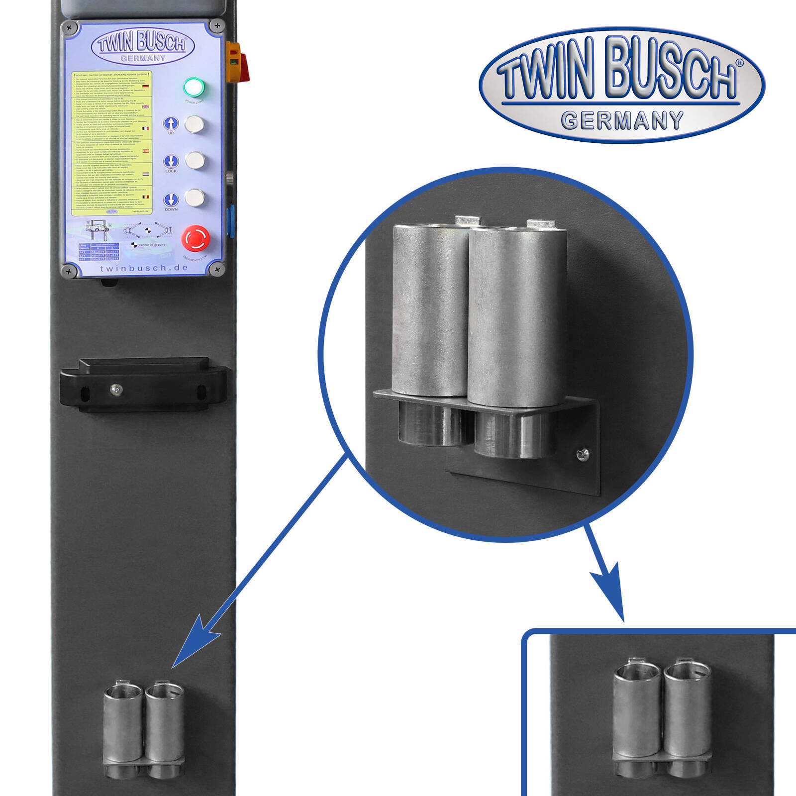 Przycisk Anti-Lift-Up, do precyzyjnego opuszczania podnośnika bez uprzedniego automatycznego podnoszenia. A także praktyczne gniazdko 230 V bezpośrednio na skrzynce rozdzielczej.