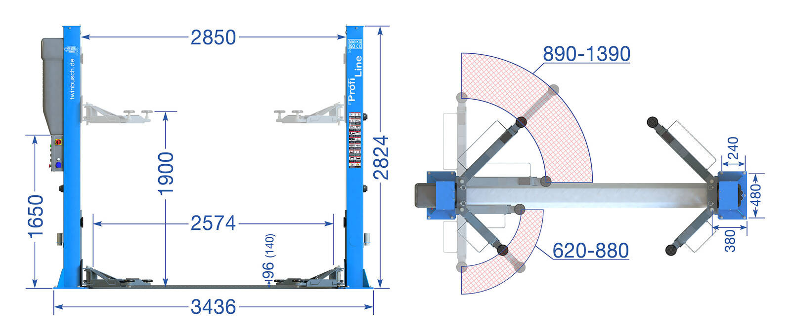 - Wysokość podnoszenia: 1900 mm / 2080 mm