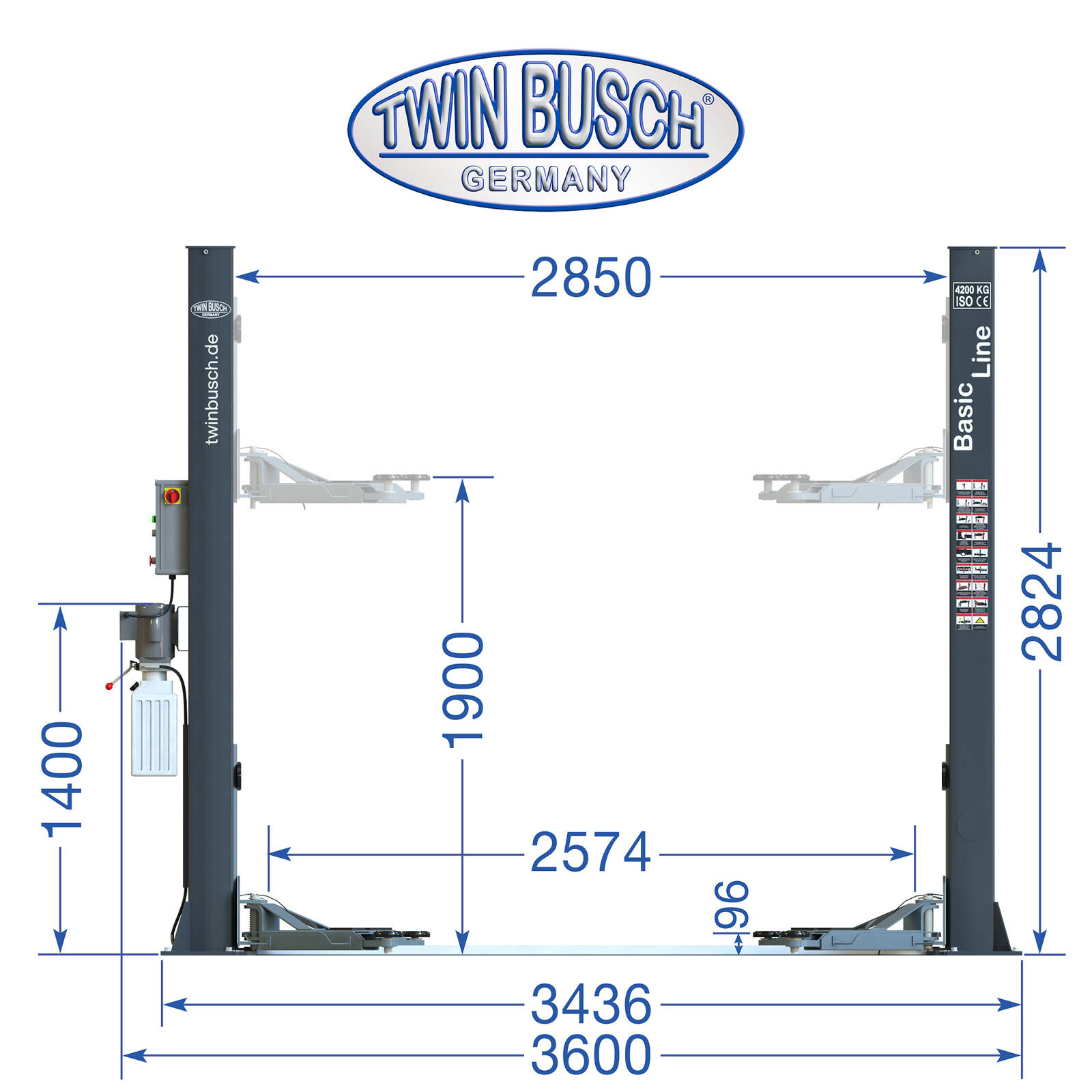 Podnośnik Dwukolumnowy Twin Busch TW 242M – G GREY – Line to idealny podnośnik dla początkujących w bardzo konkurencyjnej cenie. Talerze obrotowe z regulacją wysokości i płaska blacha najazdowa (tylko 35 mm). Podnośnikiem BASIC-Line – GREY – Line 4,2 t można podnieść wszystko od Smarta do pojazdu dostawczego. Znakomicie sprawdzi się w każdym warsztacie samochodowym.