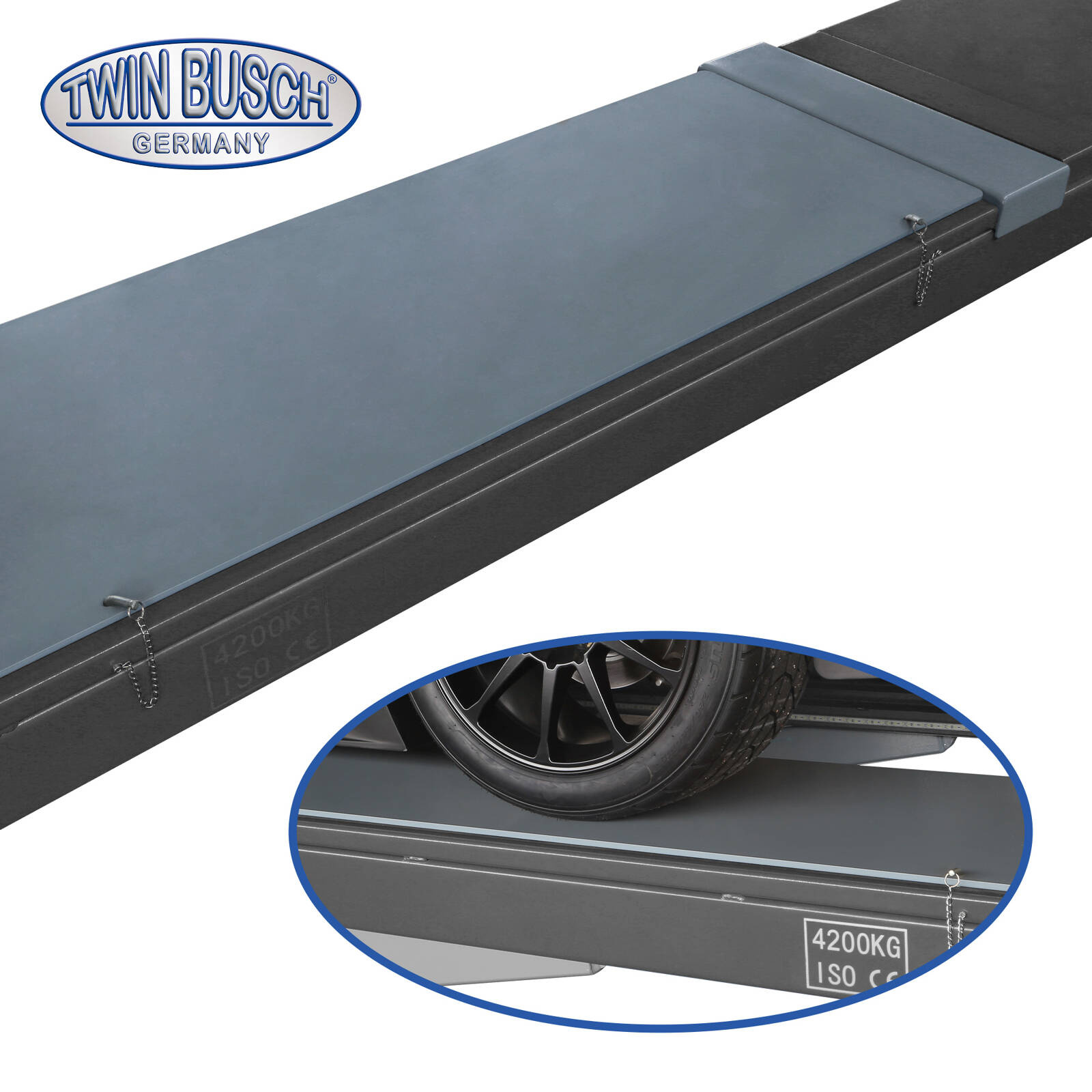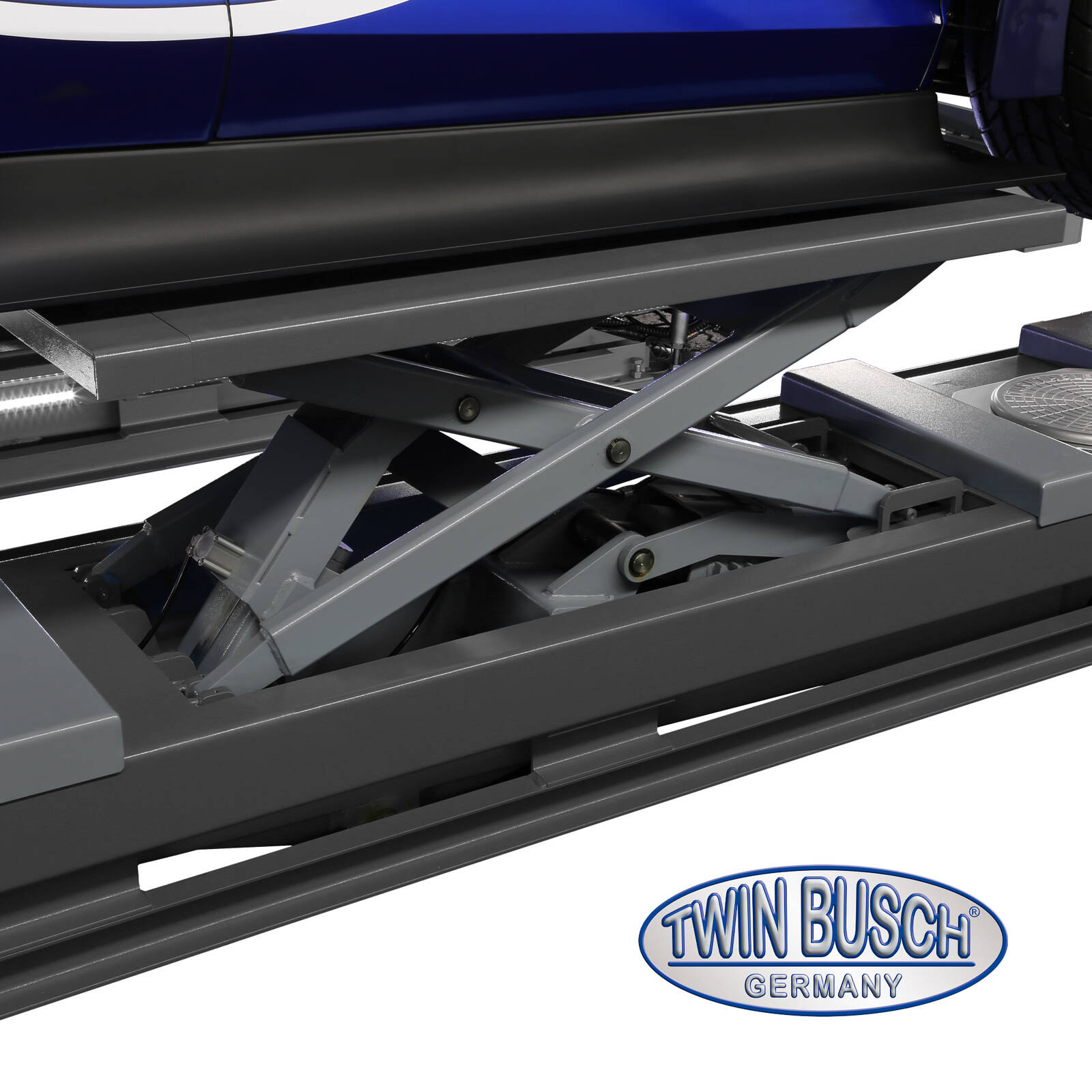 Zintegrowane podnośniki zwalniające nacisk kół umożliwiają podniesienie samochodu tak, aby wszystkie koła pozostały luźne. Podnośnik Nożycowy TW SA – 42U – G posiada szyny montażowe umożliwiające montaż podnośnika osi TW 445W. Posiada system nacięć do ustawiania geometrii kół umieszczonych w wycięciach zabezpieczających. Tylne płyty wahadłowe i wgłębienia z 6 płytami wkładanymi do płyt obrotowych umożliwiają bardzo elastyczny zakres zastosowań, od małych do dużych rozstawów osi.