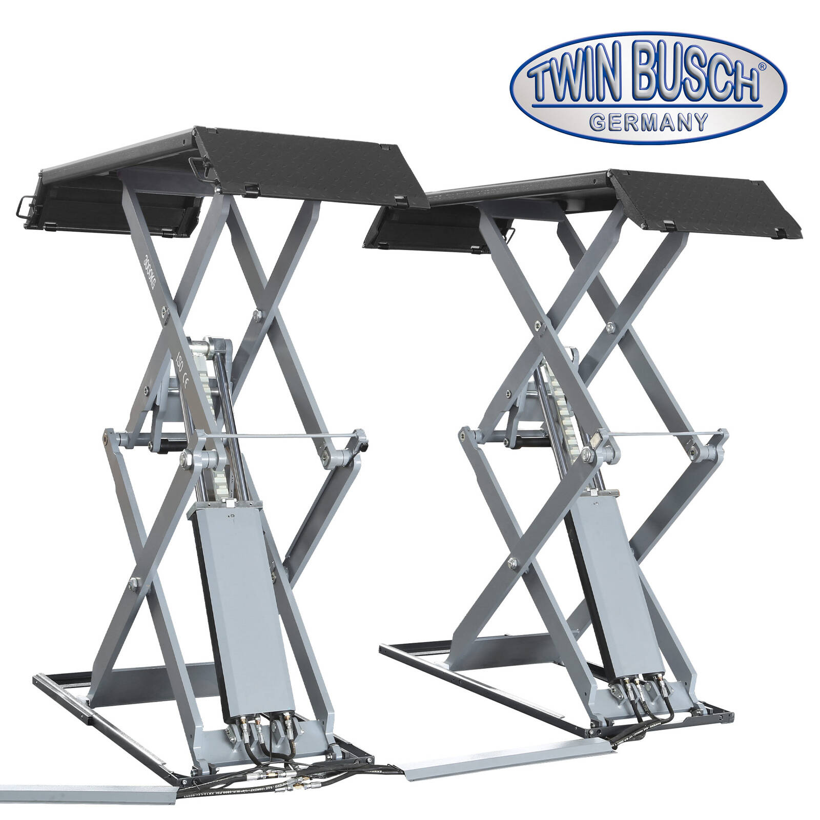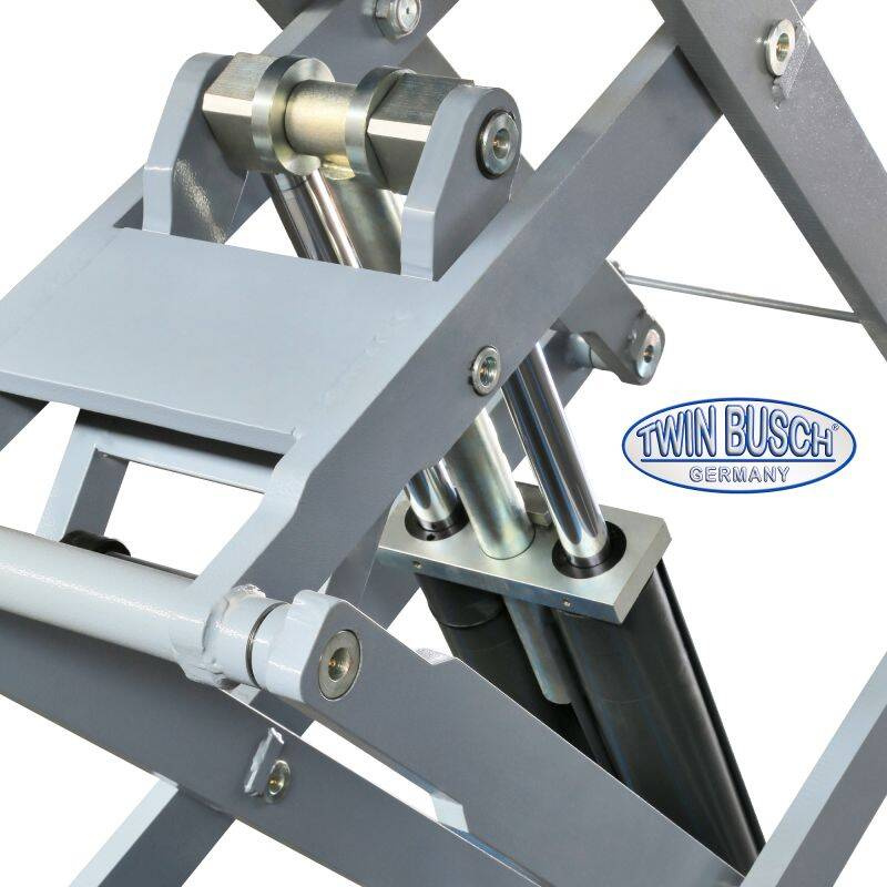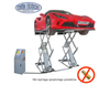 Podnośnik nożycowy elektromagnetyczny podwójny do montażu na posadzce. Dzięki ultra płaskiej konstrukcji można podnosić nawet niskie samochody sportowe. Podwójne cylindry po obu stronach i system wahaczy zapewniają mocne podnoszenie.