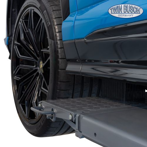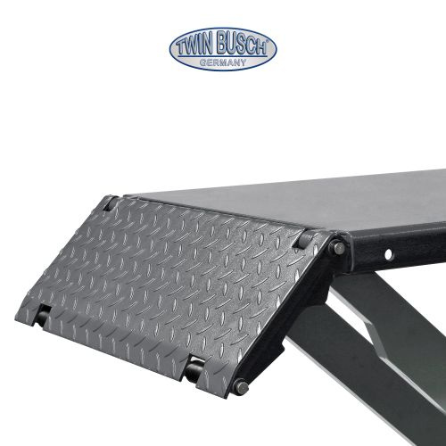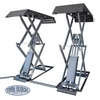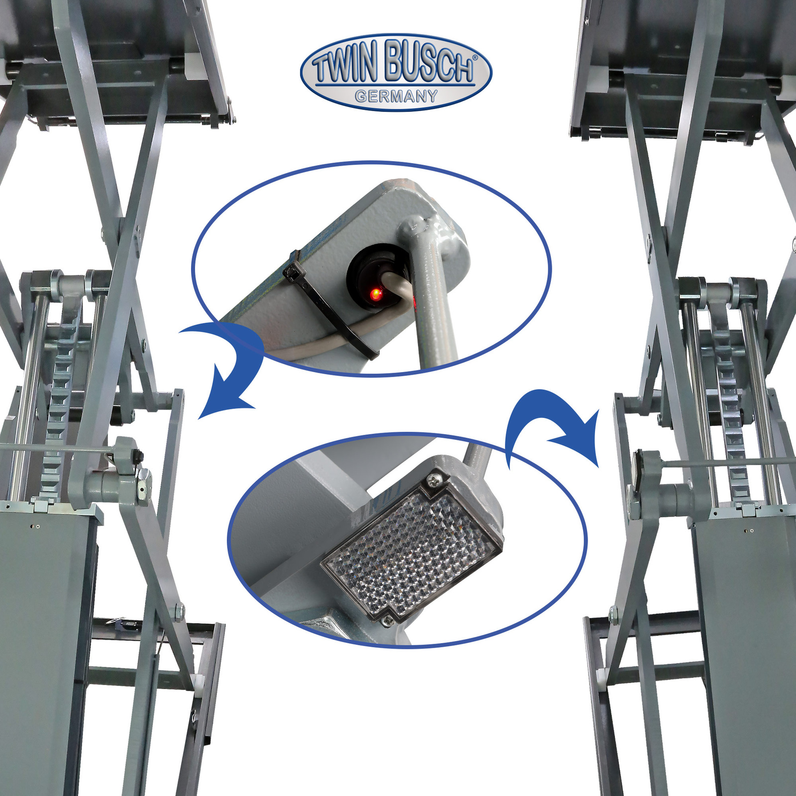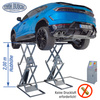 Podnośnik nożycowy elektromagnetyczny podwójny do montażu na posadzce. Dzięki ultra płaskiej konstrukcji można podnosić nawet niskie samochody sportowe. Podwójne cylindry po obu stronach i system wahaczy zapewniają mocne podnoszenie.