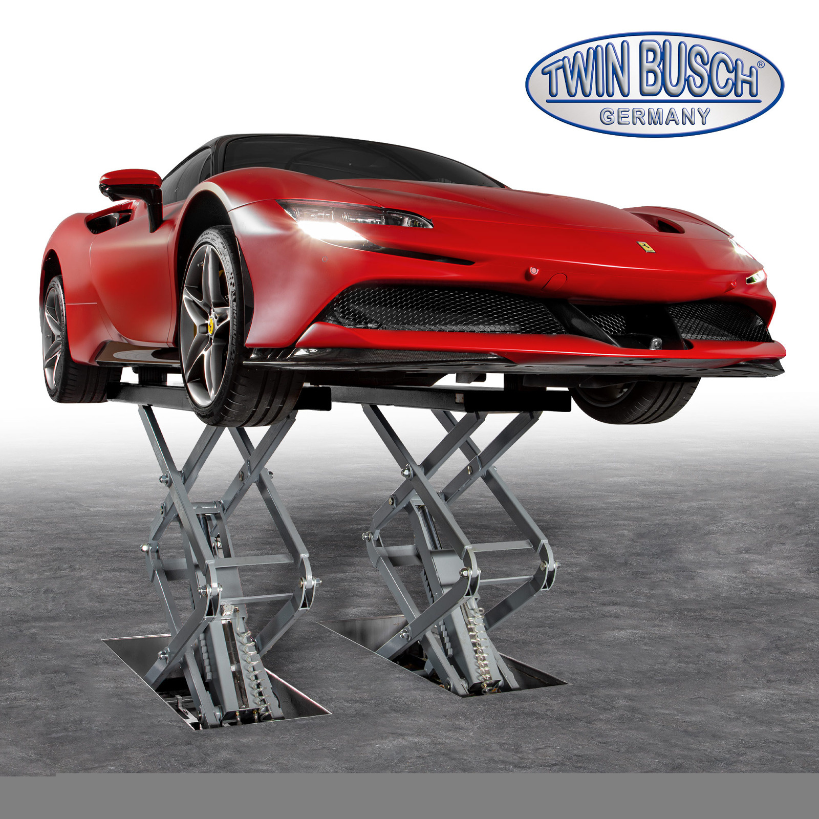 Podnośnik Nożycowy Podwójny TW S3-18U-G GREY-Line do montażu w posadzce. Elektrohydrauliczny podnośnik nożycowy z udźwigiem 3t. Płaska zabudowa umożliwia podnoszenie również samochodów sportowych. Przedłużenie szyny najazdowej do bezproblemowego udźwigu długich samochodów.