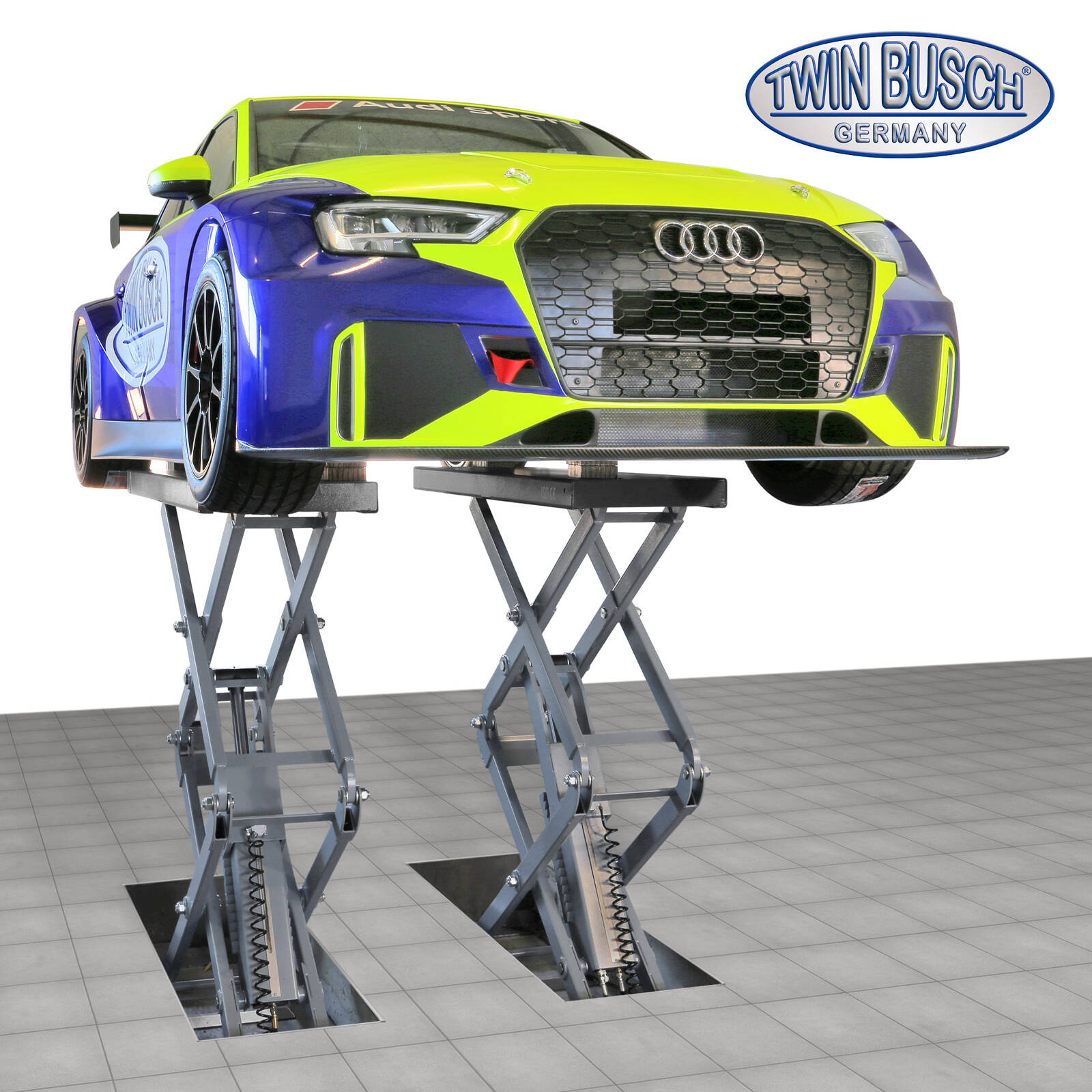 Podnośnik Nożycowy Podwójny TW S3-18UE-G GREY-Line do montażu w posadzce. Elektrohydrauliczny podnośnik nożycowy z udźwigiem 3t. Płaska zabudowa umożliwia podnoszenie również samochodów sportowych. Przedłużenie szyny najazdowej do bezproblemowego udźwigu długich samochodów.