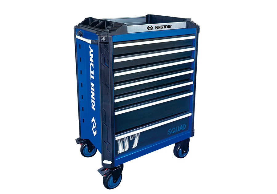 WÓZEK WARSZTATOWY SQUAD - 7 SZUFLAD, NIEBIESKI Z CZARNYMI SZUFLADAMI