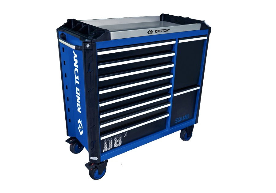 WÓZEK WARSZTATOWY SQUAD - 10 SZUFLAD, NIEBIESKI Z CZARNYMI SZUFLADAMI