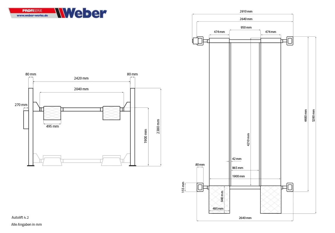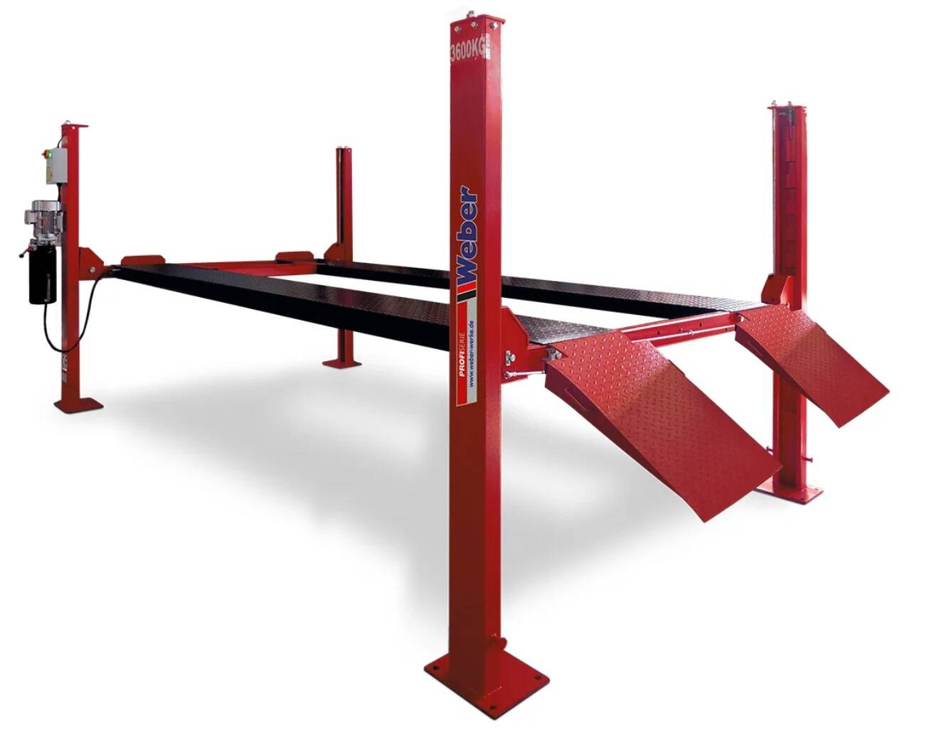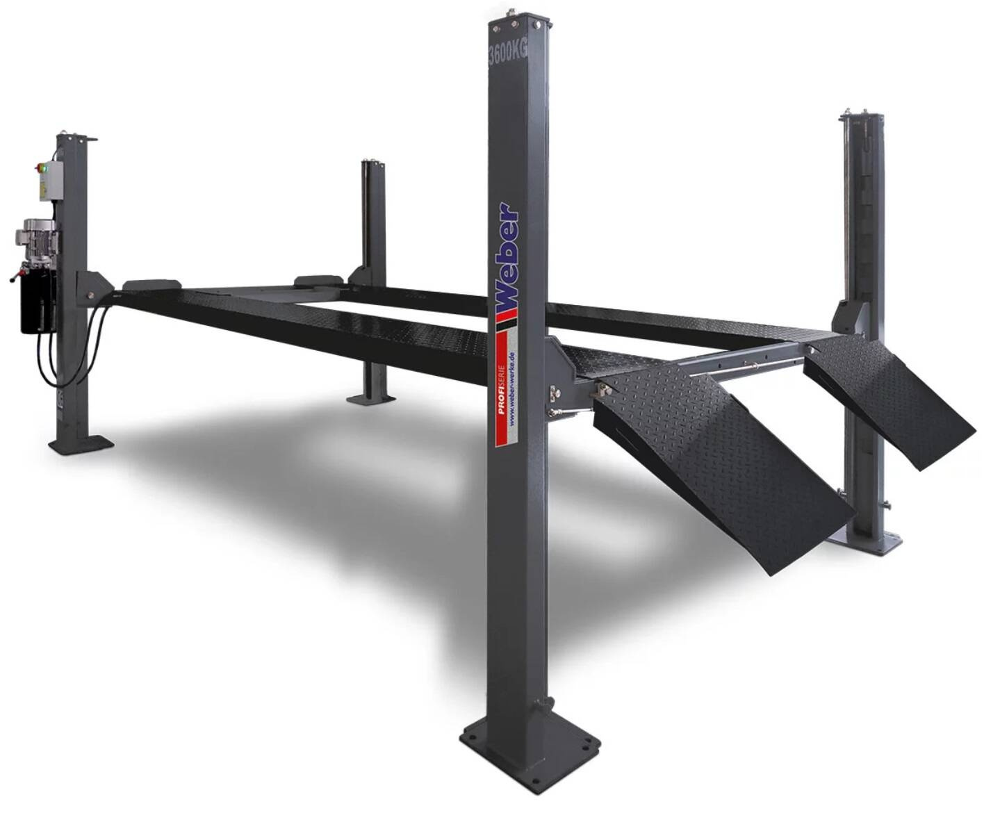 Hydrauliczny podnośnik 4-kolumnowy Weber Autolift 3.6 o udźwigu 3600 kg idealnie nadaje się do podnoszenia i opuszczania samochodów osobowych oraz dostawczych.