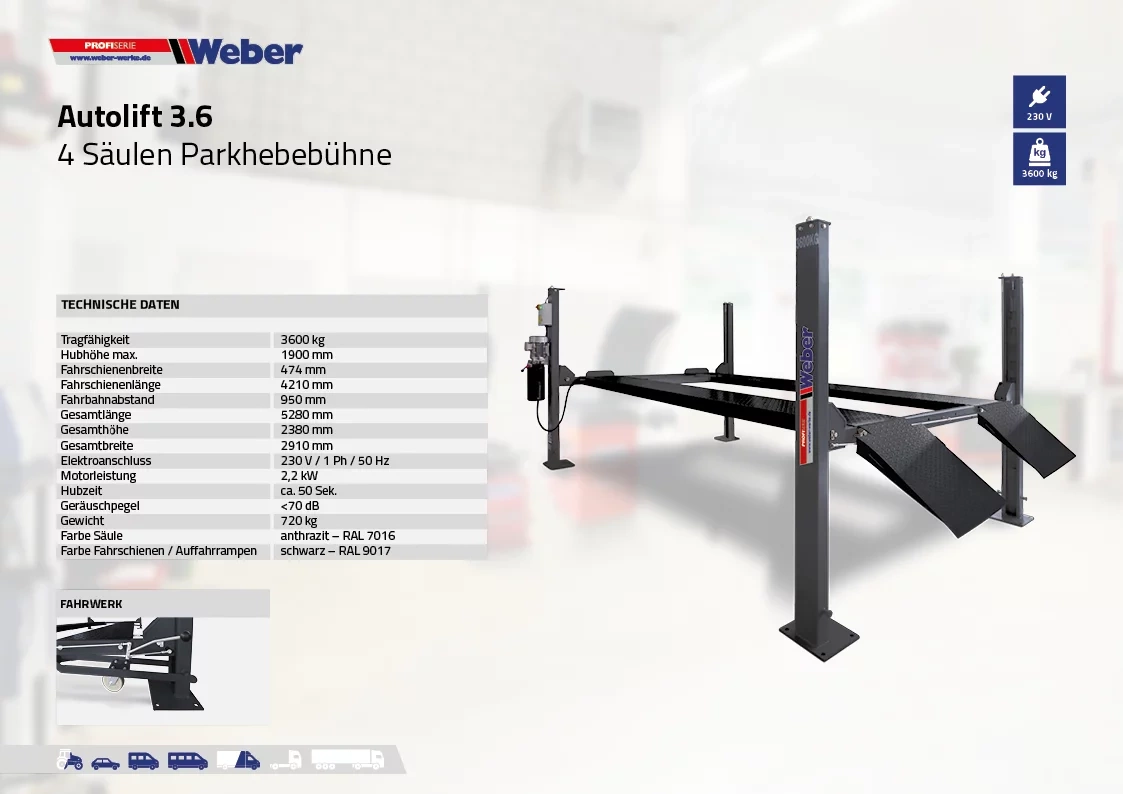 Podnośnik parkingowy Weber Profi Series Autolift 3.6 Model: 120209