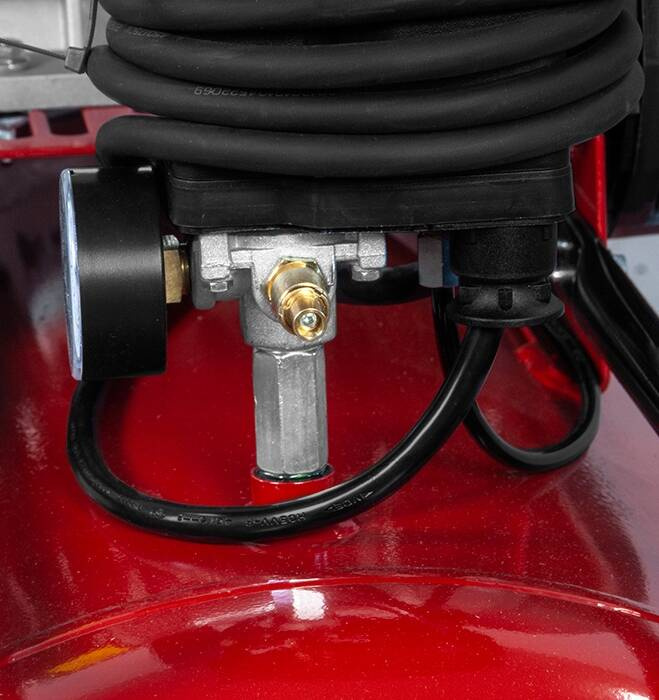 - Dodatkowe trzecie wyjście ze zbiornika zakończone gniazdem szybkozłącza, służące np do przyłacza instalacji spręzonego powietrza
