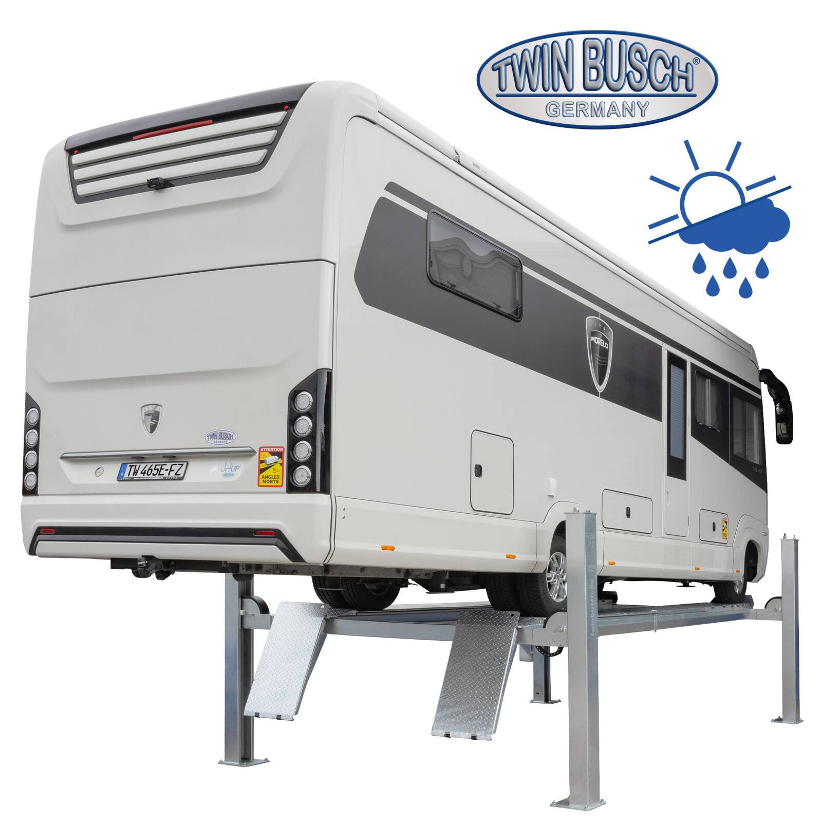 TW465E-FZ jest specjalnie zaprojektowany do użytku na zewnątrz. Jest w pełni ocynkowany, a tym samym optymalnie zabezpieczony przed korozją. Idealnie nadaje się jako platforma do odbioru prac lub do ustawiania zbieżności kół. Dzięki ładowności 6500 kg można podnosić wszystko, od samochodów osobowych po vany.