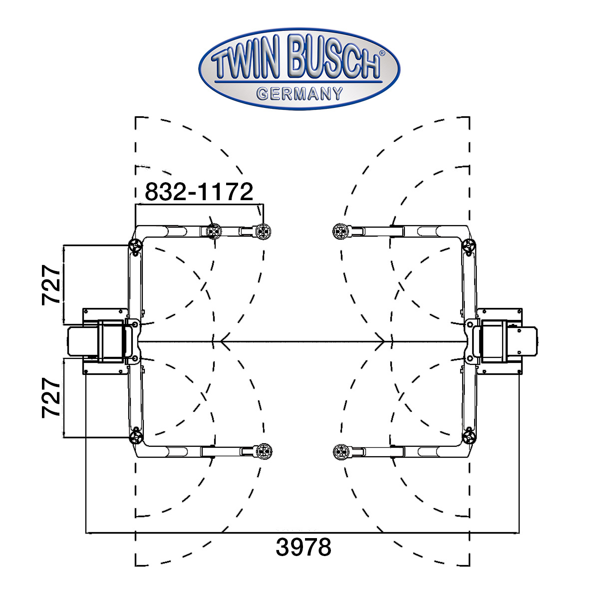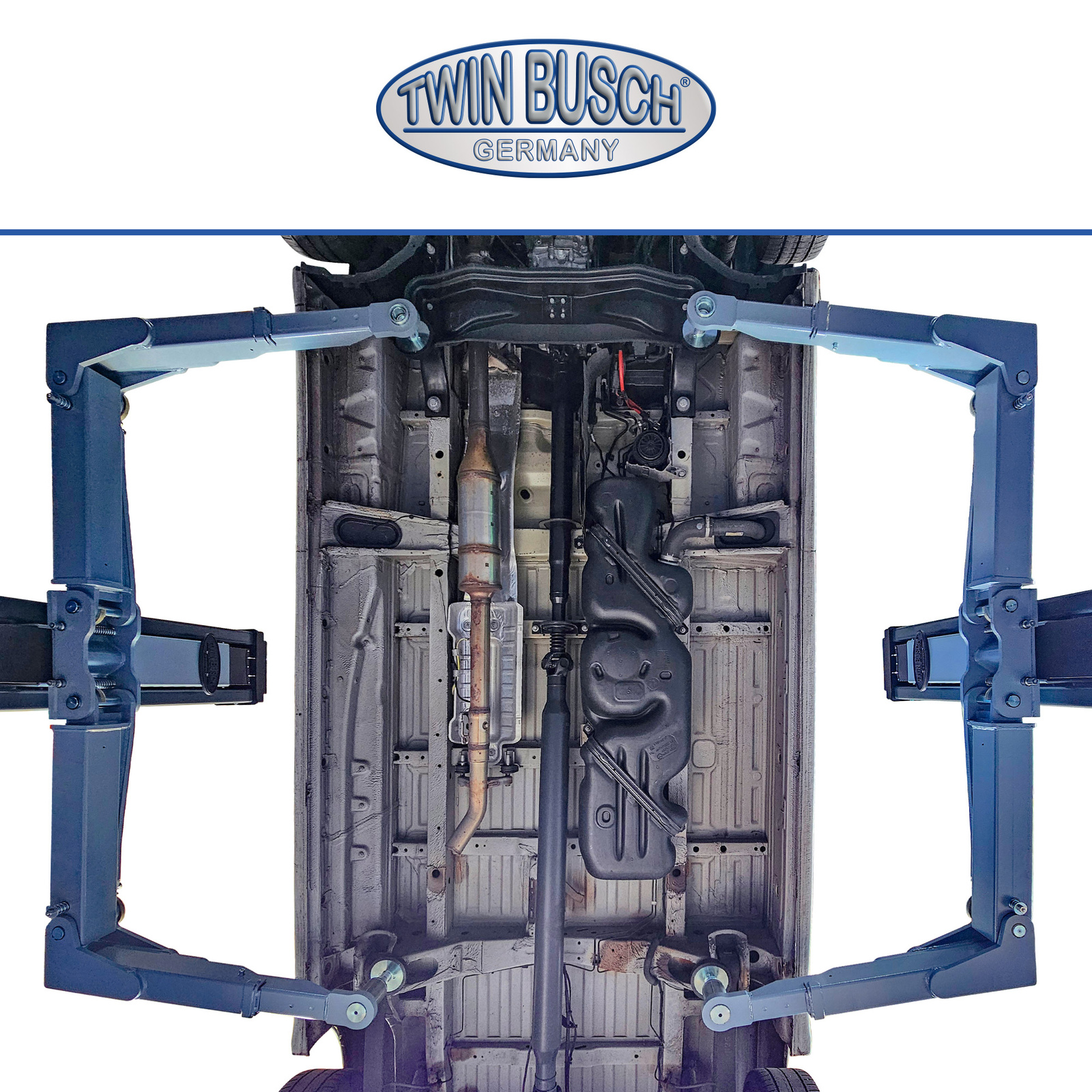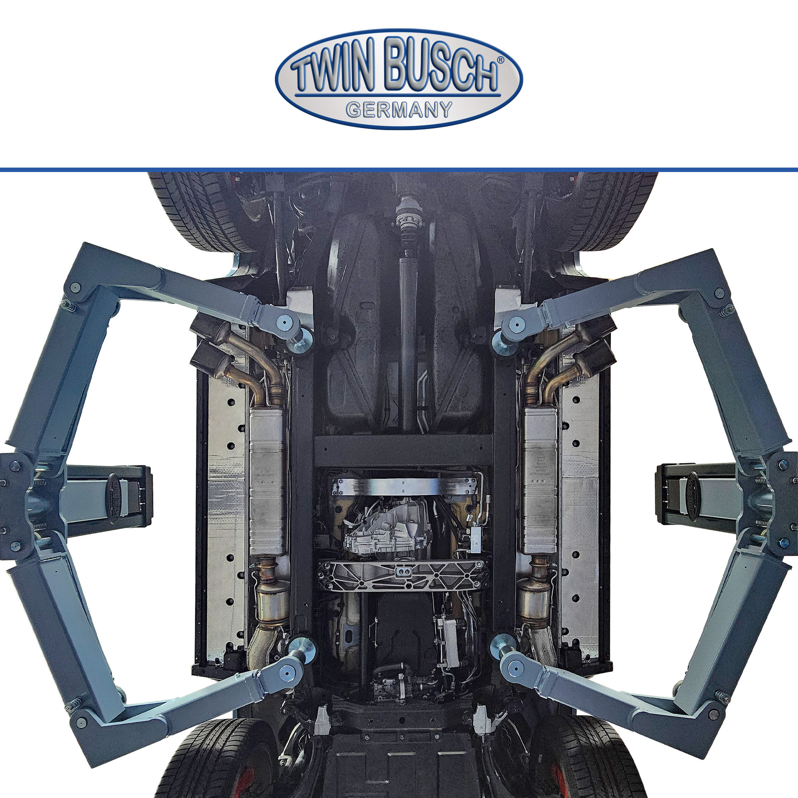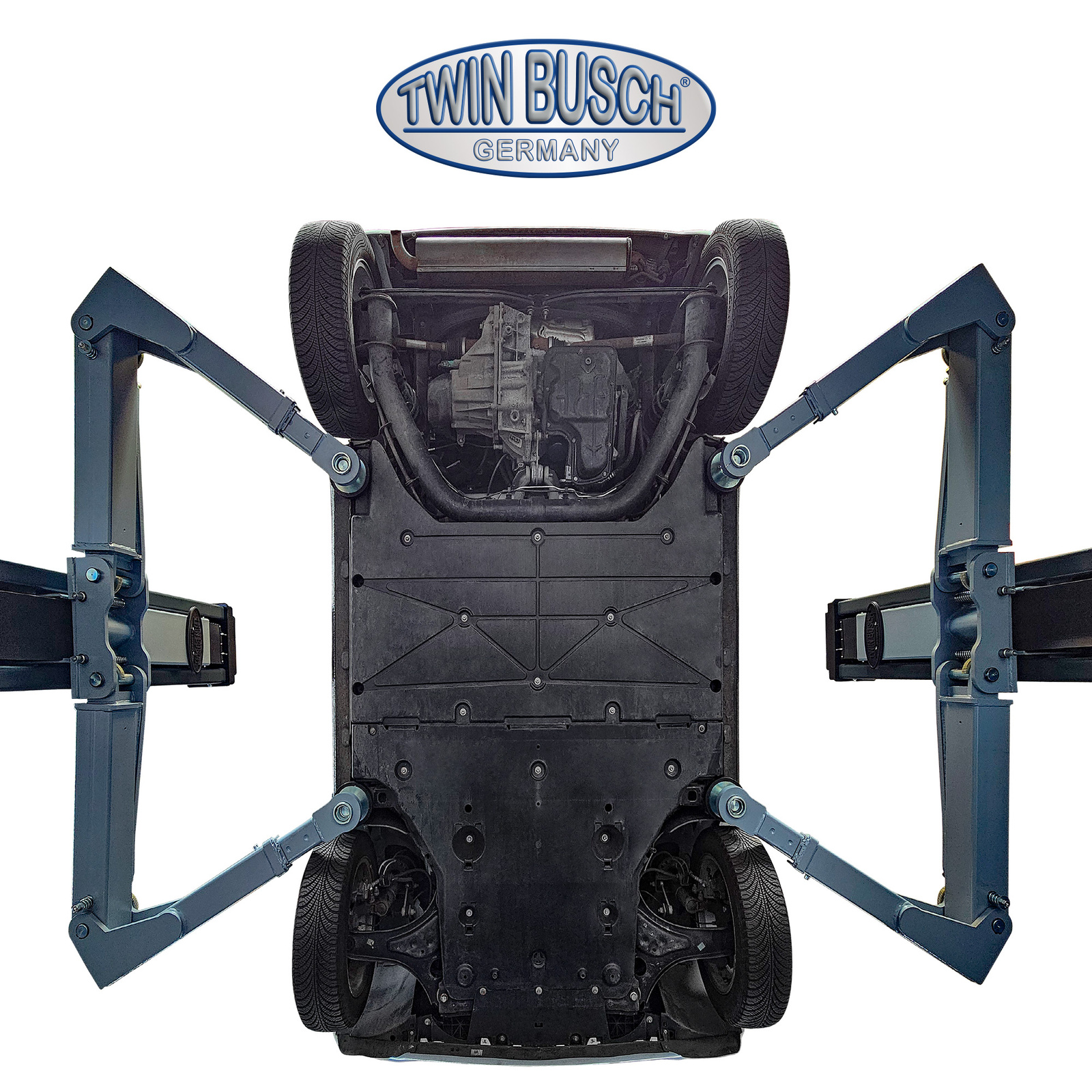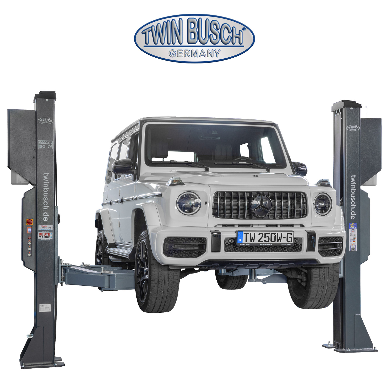 Dzięki udźwigowi 5.0 t i symetrycznie teleskopowym ramionom nośnym z podwójnym przegubem w konstrukcji ramienia nośnego M, TW250W-G to potężny, mocny podnośnik w grupie 2-kolumnowej. TW250W-G posiada dwie jednostki sterujące (po jednej na kolumnę) i dwie niezależne jednostki hydrauliczne, co zapewnia szczególnie wysoki poziom komfortu obsługi i można je łatwo dostosować do potrzeb warsztatu podczas instalacji pod względem szerokości montażowej (4132 mm lub mniej). Na zewnątrz każdej kolumny znajduje się również praktyczny uchwyt na adapter wtykowy, który zapewnia miejsce do bezpiecznego przechowywania dwóch adapterów wtykowych. Dzięki niezwykle dużemu zakresowi regulacji, można łatwo podnieść wszystko, od małych samochodów (np. Smart) po samochody dostawcze, nawet z dużym rozstawem osi (np. MB Sprinter, samochody kempingowe, pojazdy specjalne).