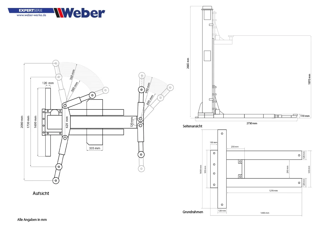 Podnośnik jednokolumnowy 2,5T do niskich pomieszczeń Weber Expert Serie C-1.25