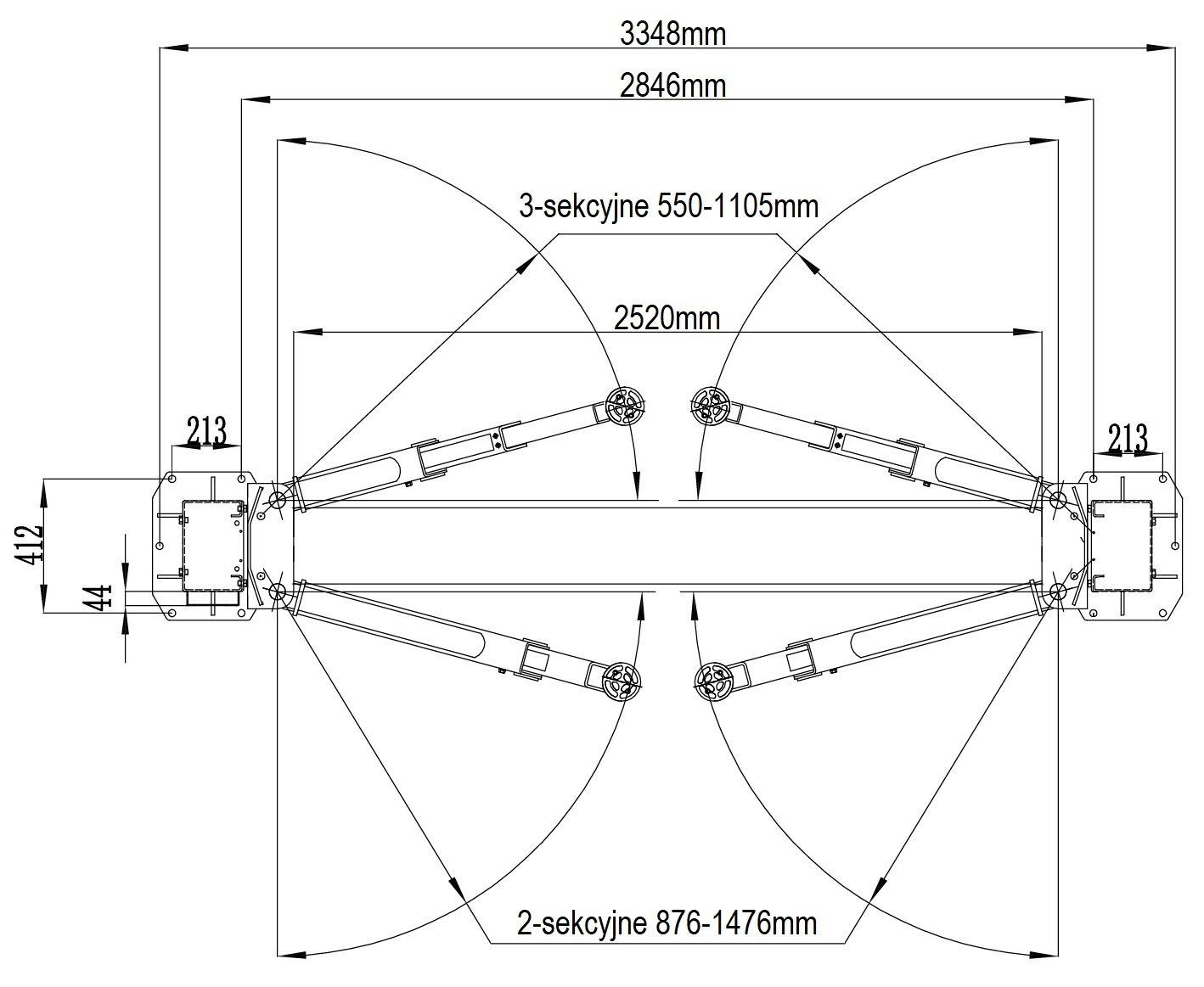 | Ramiona tylne : | 876-1476 mm (2-sekcyjne) |