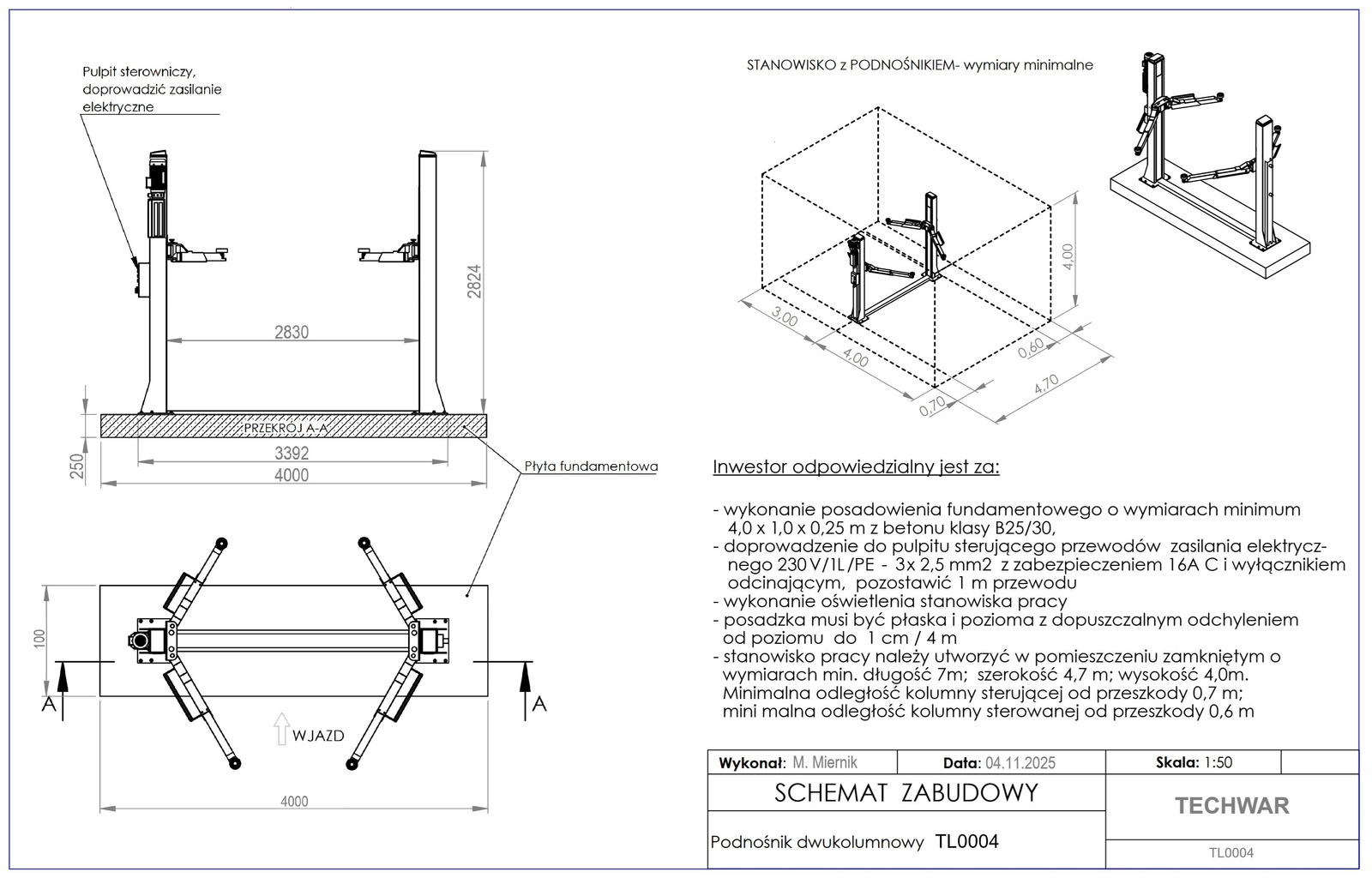 Podnośnik dwukolumnowy automatyczny Techwar TL0004 230V