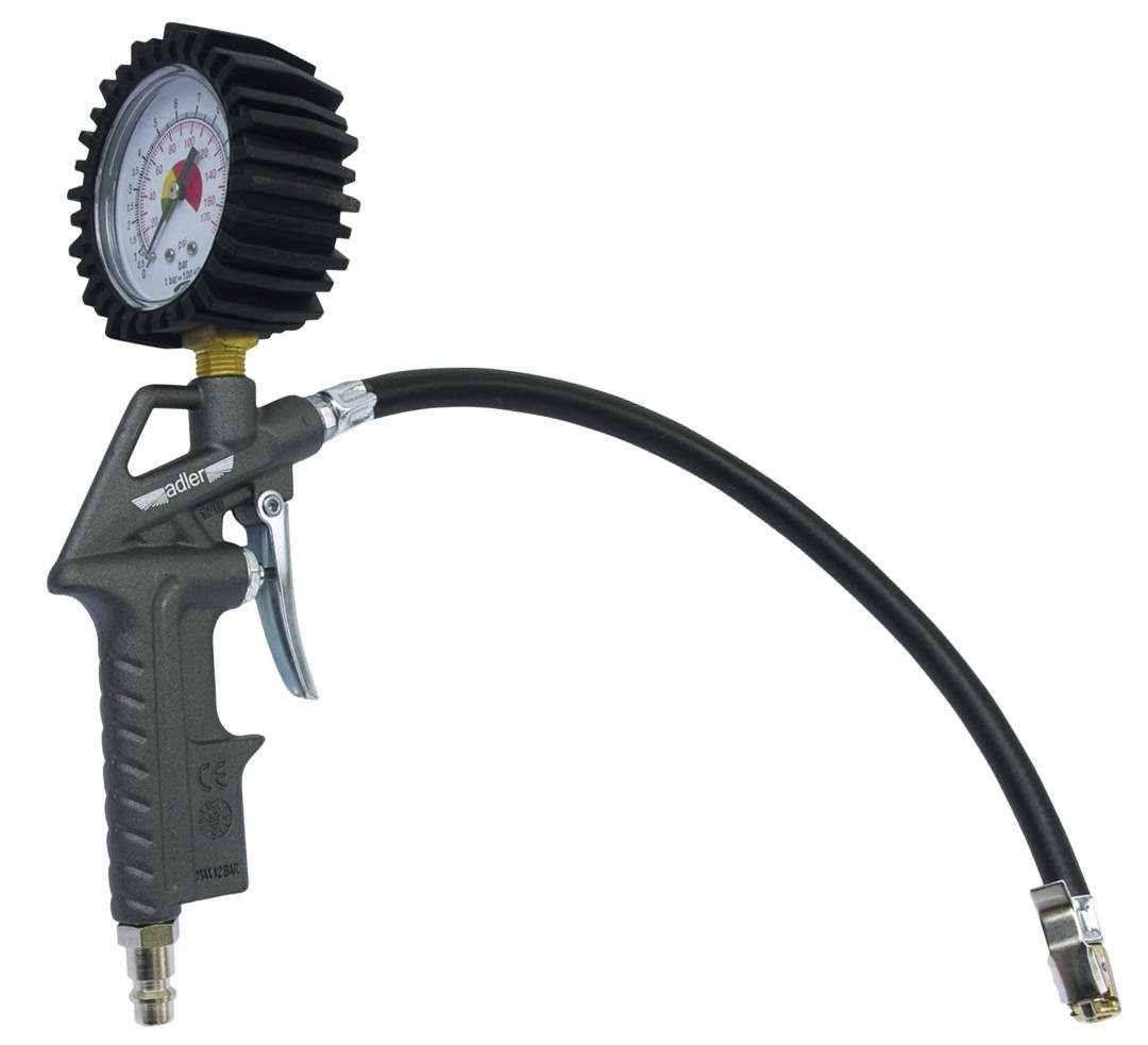 Pistolet do pompowania OMG jest przeznaczony do amatorskiego, półprofesjonalnego i profesjonalnego wykorzystania. Do pompowania kół samochodowych, rowerowych a także innych dmuchanych przedmiotów np za pomocą specjalnych końcówek. Pistolet jest wyprodukowany dla naszej firmy we Włoszech, przez znanego producenta firmę OMG. Korpus jest odlewany z żeliwa, wskaźnik ciśnienia (manometr) to markowy produkt firmy WIKA, który dodatkowo jest chroniony gumową osłoną zabezpieczającą przed przypadkowymi uszkodzeniami mechanicznymi. Wysokiej jakości przewód zaciśnięty maszynowo na obu końcach, wytrzymałość ciśnieniowa do 20 bar.
