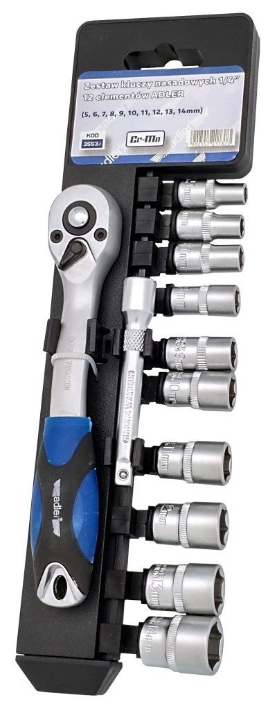 Wysokiej jakości zestaw 10 szt krótkich nasadek z profesjonalną grzechotką 1/4" (typ zębatki 72, kąt powrotu 5o).