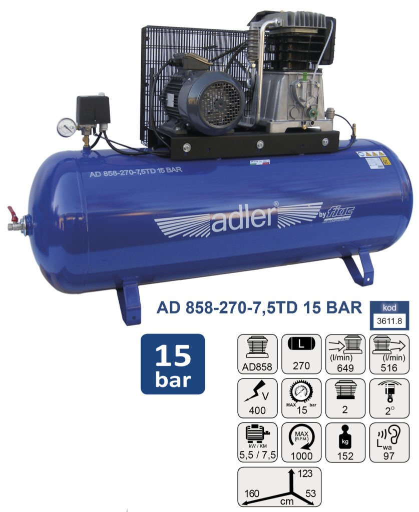 - Nazwa kompresora:AD 858-270-7,5TD 15 BAR