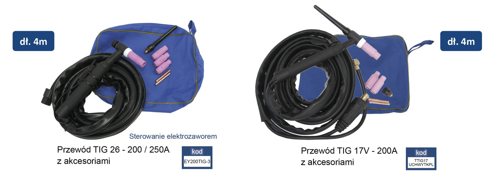 W naszej ofercie posiadamy dwa rodzaje przewodów TIG z akcesoriami:
