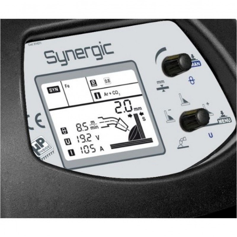 Szybka regulacja synergiczna parametrów spawania poprzez wyświetlacz LCD czyni urządzenie bardzo łatwym w użyciu. Wystarczy tylko ustawić grubość spawanego materiału i zacząć spawać: inteligentny i automatyczny układ kontroli łuku spawalniczego, krok po kroku, dobierze najlepsze parametry, dla każdej pozycji spawania i dla każdego materiału. Użytkownik może również ustawić ręcznie długość łuku spawalniczego i dopasować wygląd spoiny do własnych potrzeb.