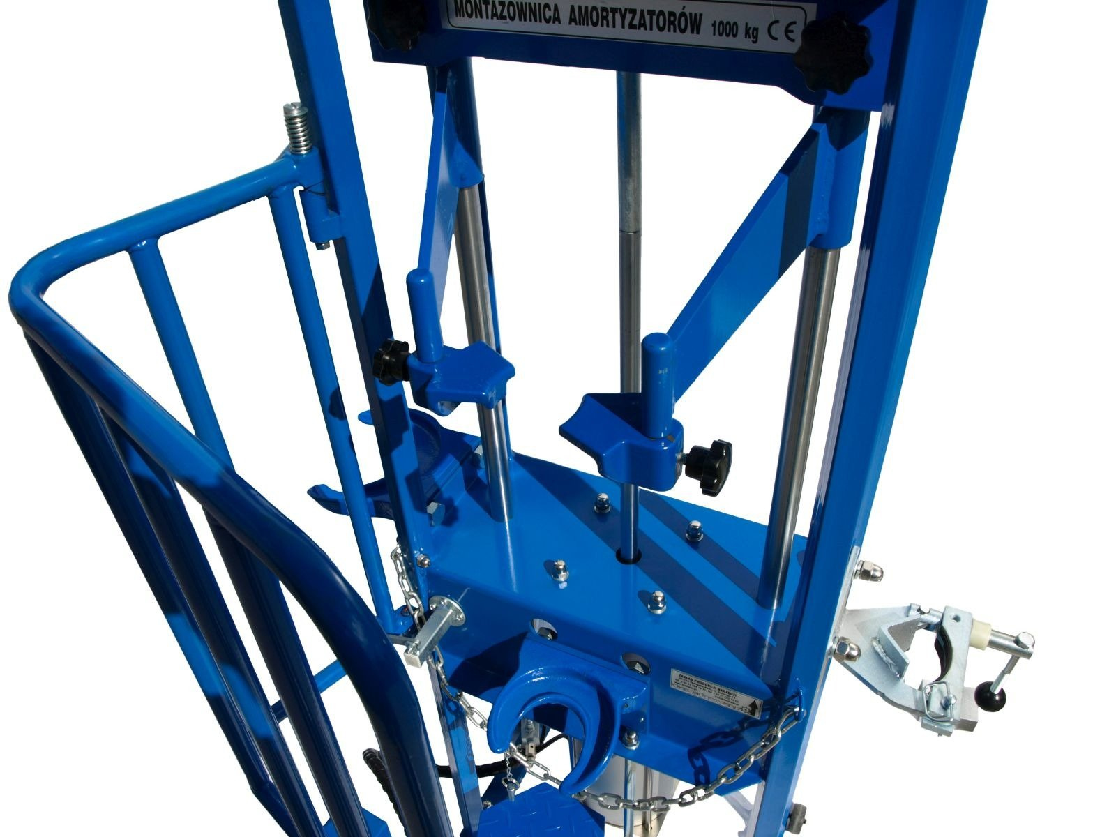Precyzyjne wykonanie wszystkich komponentów jest gwarancją niezawodnego użytkowania ściągacza, ale również przekłada się na bezpieczeństwo podczas pracy. Dla zachowania maksymalnego poziomu bezpieczeństwa, w ściągaczu zamontowana została klatka chroniąca personel warsztatu przed niekontrolowanym pęknięciem sprężyny. Ponadto belka górna została wyposażona w solidne zaczepy, na których opiera się wyciskana sprężyna, a dolne uchwyty są w bezpieczny sposób połączone z korpusem ściągacza zapewniając stabilne podtrzymanie wyciskanego elementu.